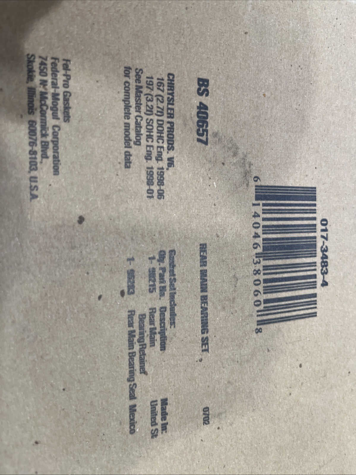 This Fel-Pro BS 40657 Crankshaft Seal Kit is a high-quality product made in Mexico. It is designed to fit the rear of your engine and is suitable for various car models including Concorde, Intrepid, Sebring, and Stratus with years ranging from 1998 to 2007. The kit is interchangeable with part numbers 17373 and JV1643.