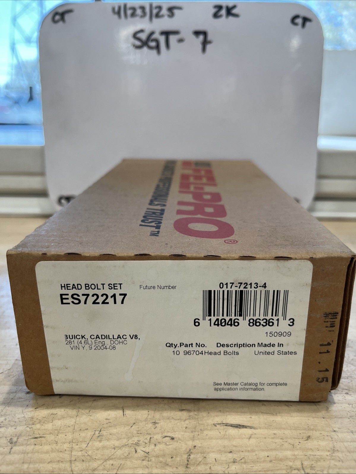 This is a Fel-Pro ES 72217 Cylinder Head Bolt Set designed for use in engines and engine parts. The product is a set of bolts that are used to secure the cylinder head to the engine block. The brand is Fel-Pro and the manufacturer part number is ES 72217. The bolt set is interchangeable with part numbers 89017451, 89017450, 11589058, and 11562349. The product is made in the United States.