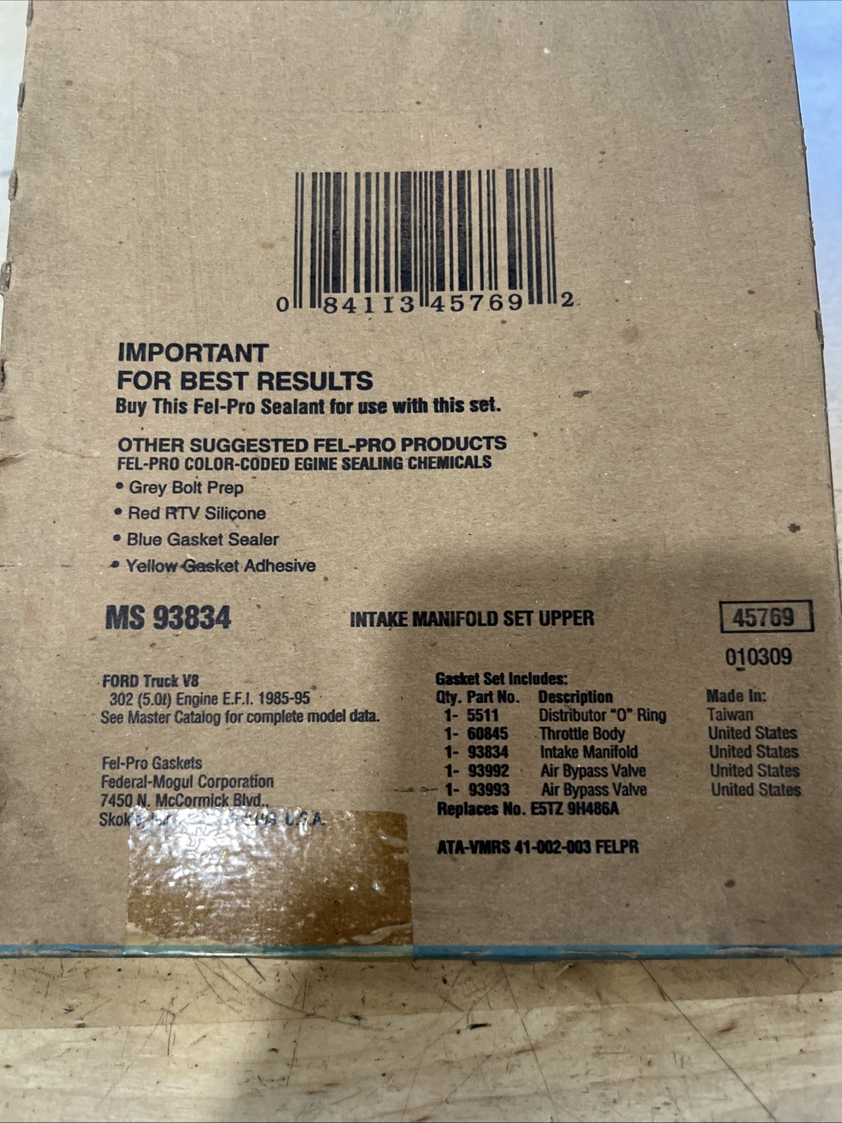 This product is a FEL-PRO MS 93834 manifold set designed for FORD 5.0L engines. It is a performance part that helps improve the engine's efficiency and power. The product is manufactured by Fel-Pro, a reputable brand known for producing high-quality gaskets and seals for automotive engines. The manufacturer part number is MS 93834.