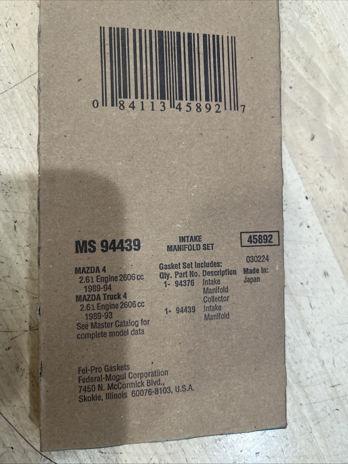 This Fel-Pro MS 94439 Intake Manifold Gasket Set is designed for 89-94 Mazda B2600 MPV and is made in the United States. The gasket set includes both lower and upper placements on the vehicle and is compatible with various interchange part numbers such as 23605, 0374677, MS15671, and 0951122. It is ideal for sealing the engine intake manifold and ensuring proper fuel delivery.