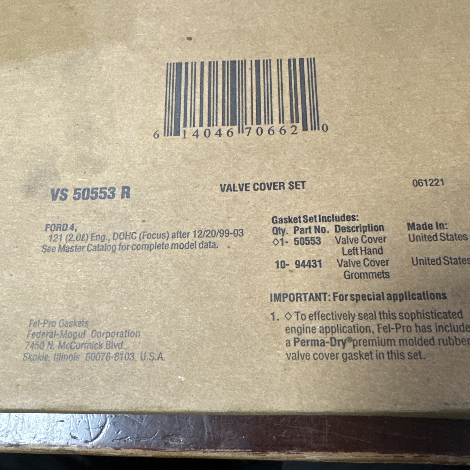 This is a high-quality valve cover gasket made by Fel-Pro, a well-known brand in the automotive industry. It is designed to fit perfectly and provide a reliable seal to prevent oil leaks and other damage. The gasket is made from durable materials to withstand the harsh conditions in the engine compartment and is easy to install. The manufacturer part number is VS50553R. It is suitable for use in various car and truck models and is a great replacement part for your engine.