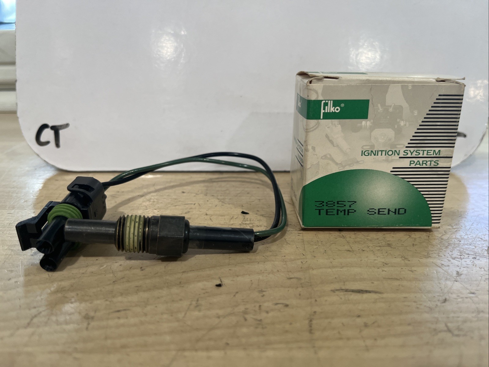 This is a Filko 3857 Temperature Sending Unit that is new old stock (NOS). The unit type is a sending unit and it is designed to send temperature information to the dashboard of a car or truck. The part number is 3857 and it is interchangeable with TS167 and TSU129. This item is a Filko brand product and is listed under the category of car and truck parts and accessories.