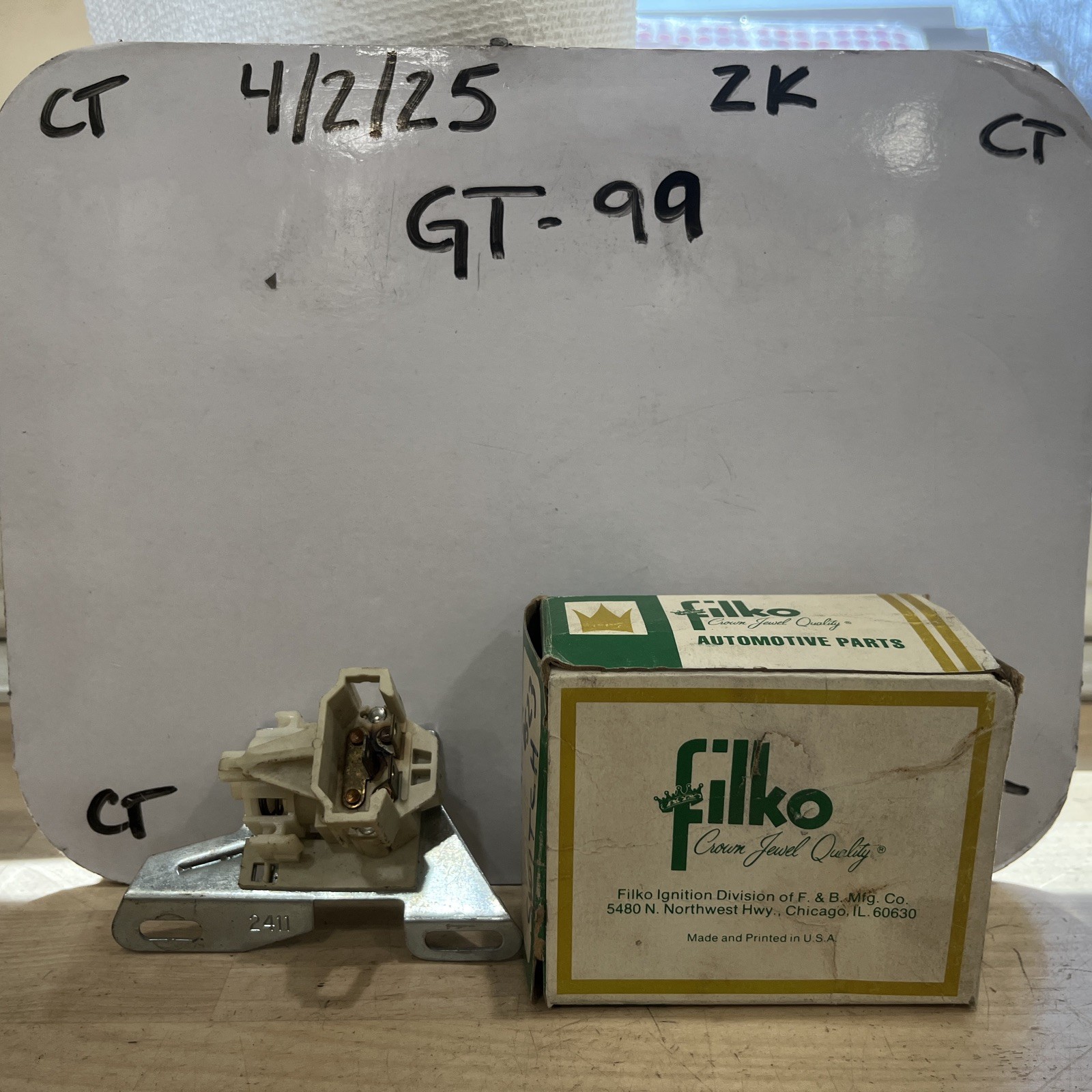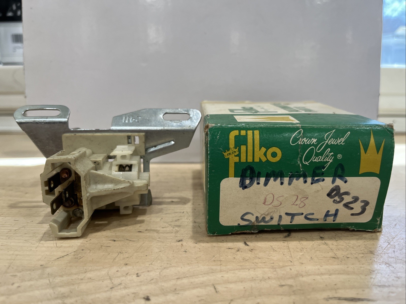 This is a Filko dimmer switch designed for lower steering column mounting on a 1984-1996 Corvette. The manufacturer part number is DS23. It is a replacement part for the original dimmer switch on the steering column.
