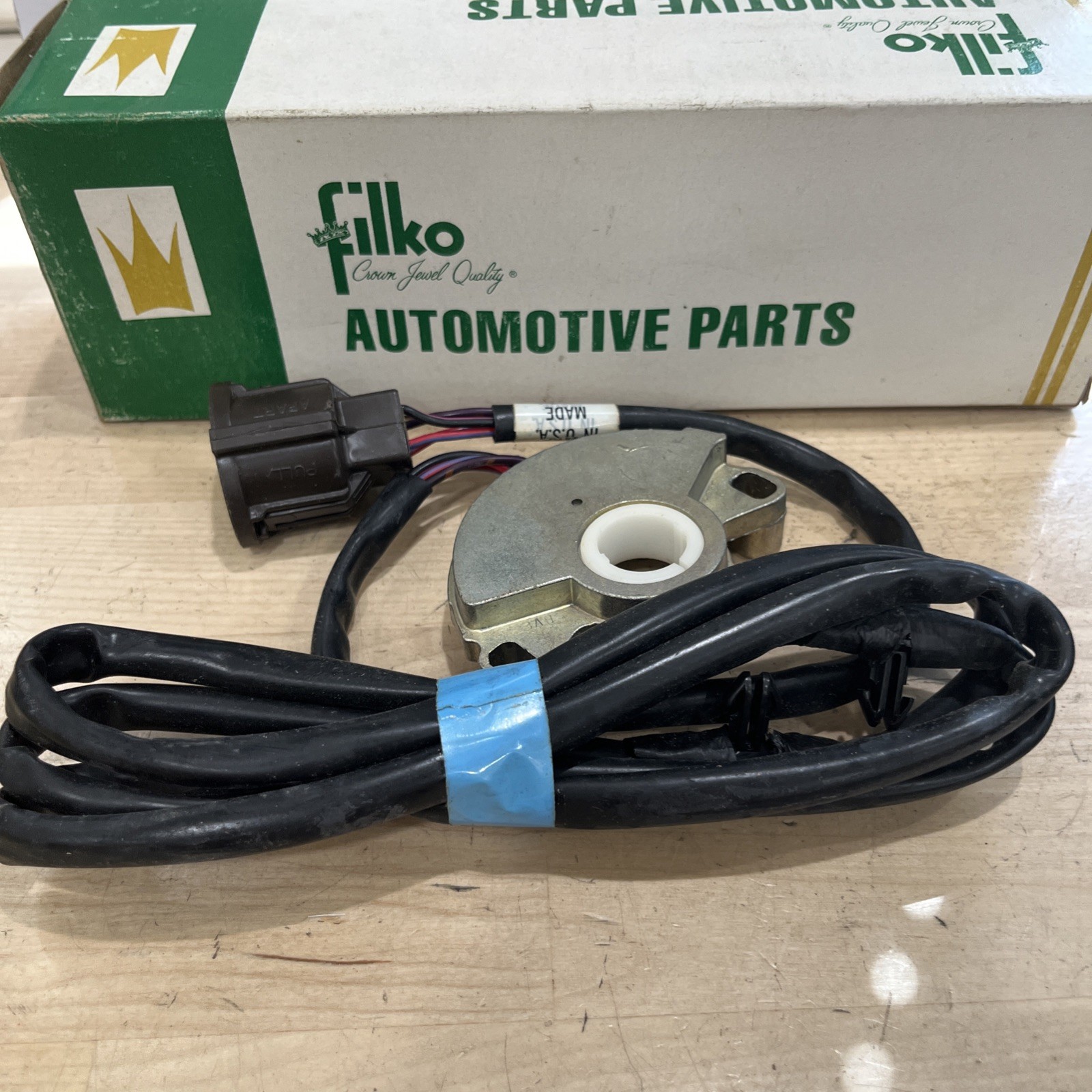 This is a vintage Filko NS92 neutral safety switch designed for use in 1983-1986 Ford Bronco, F100, F150, F250, F350, Econoline, and E-Series vans and trucks with automatic transmission. The switch is interchangeable with part numbers F100 F150 F250 F350 E100 E150 E250 E350 Van Pickup Truck and C5 C6 Automatic Transmission, and is made to fit OE/OEM part number E3UZ-7A247A. It is a new, never used item.