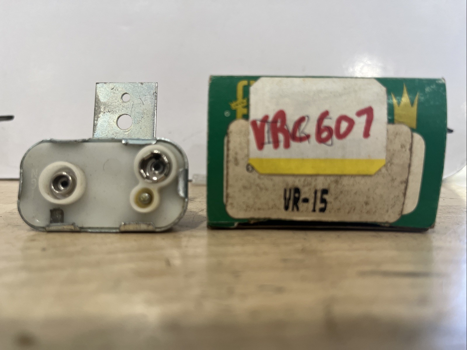 This is a Filko Voltage Regulator with the manufacturer part number VR-15. It is designed to regulate voltage in a car or truck, and is interchangeable with part number VRC607. This item is listed under the category "Car & Truck Parts & Accessories" and "Starters, Alternators, ECUs & Wiring" on eBay Motors.