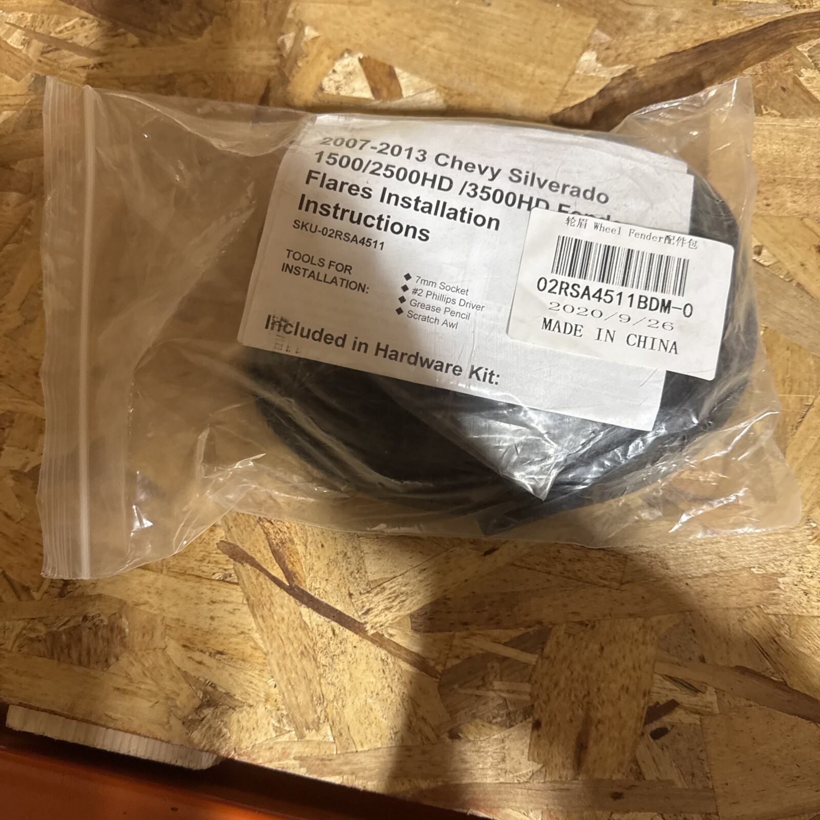 These black polypropylene fender flares are designed as a direct replacement for 2007-2013 Chevy Silverado 1500 and 2500 models. The set includes four pieces with a textured black finish and a pocket rivet design for a stylish look. They come with mounting hardware and are riveted for easy attachment. The manufacturer part number is E-02RSA4511BDM and they have an interchange part number of TEXTURED FENDER FLARE. The fender flares are backed by a 1-year manufacturer warranty and a 30-day money-back guarantee. Returns are hassle-free with free return shipping for the lower 48 states and PayPal payments are accepted.