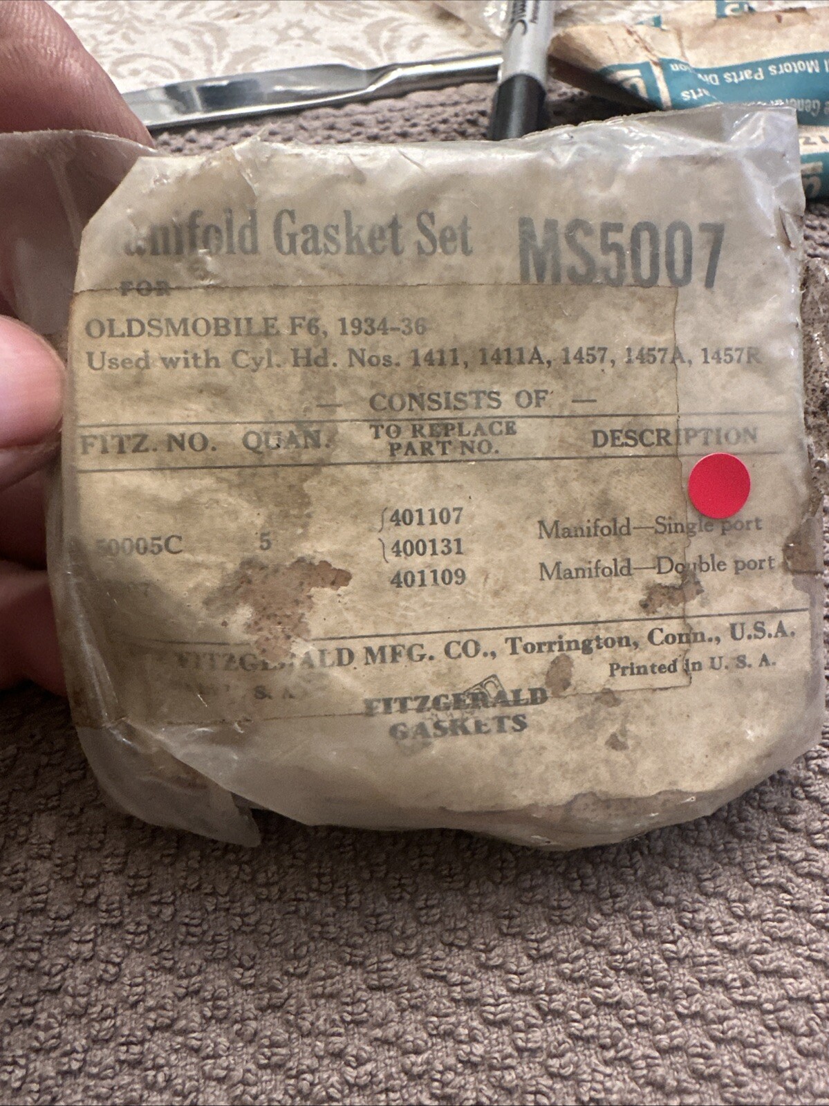 This Fitzgerald Manifold Gasket Set Ms5007 fits perfectly with your 1934-1936 Oldsmobile F6. The set includes a high-quality gasket that ensures a tight seal for your engine. It is specifically designed for Oldsmobile engines and is made of durable materials that provide long-lasting performance.