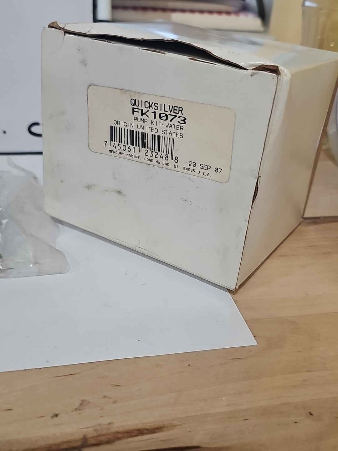 The product is a FK1073 Genuine OEM Mercury Chrysler Force Quicksilver Water Pump Kit. It is designed for boat outboard engines and components. The kit is manufactured by Mercury and has a manufacturer part number of FK1073. This water pump kit is specifically made for Mercury, Chrysler, and Force outboard engines, providing a reliable solution for maintaining proper water circulation and cooling in marine settings.
