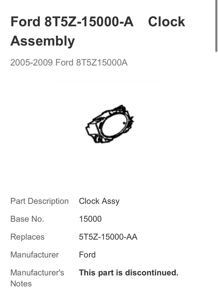 Ford 8T5Z-15000-A Clock Assembly 2005-2009 Ford 8T5Z15000A