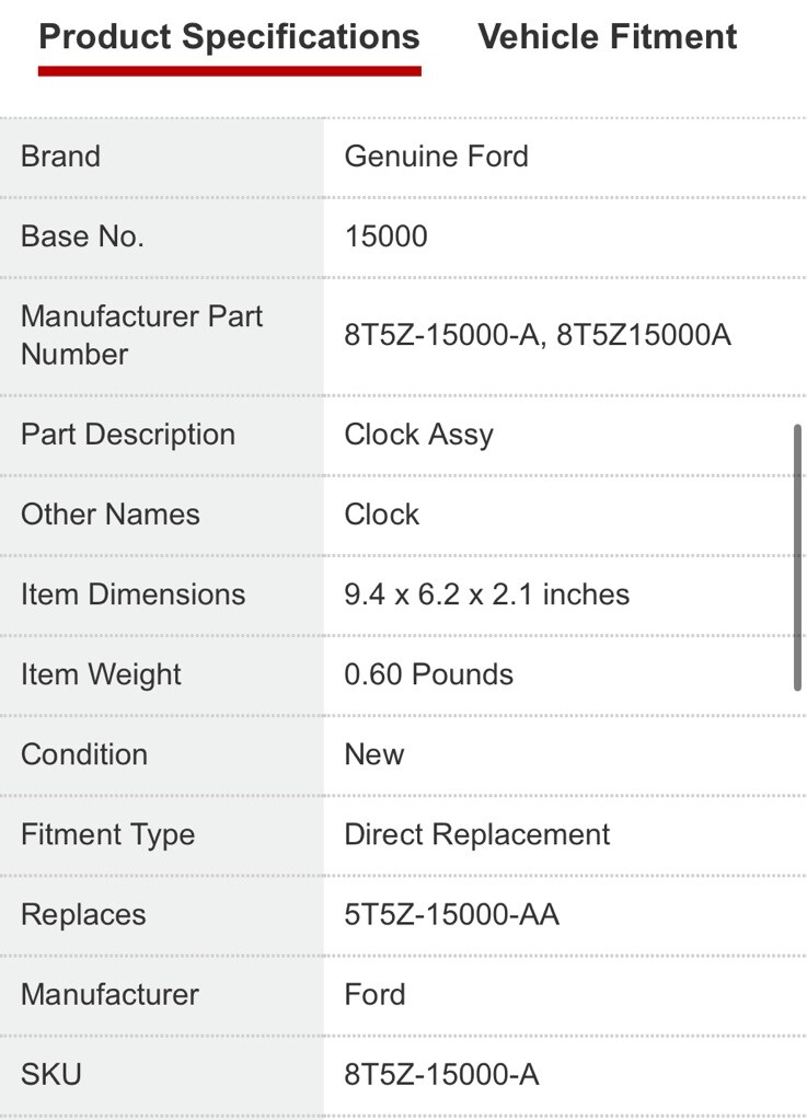 Ford 8T5Z-15000-A Clock Assembly