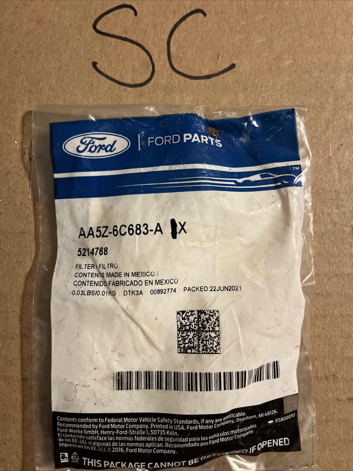 2010-2019 Ford AA5Z6C683A