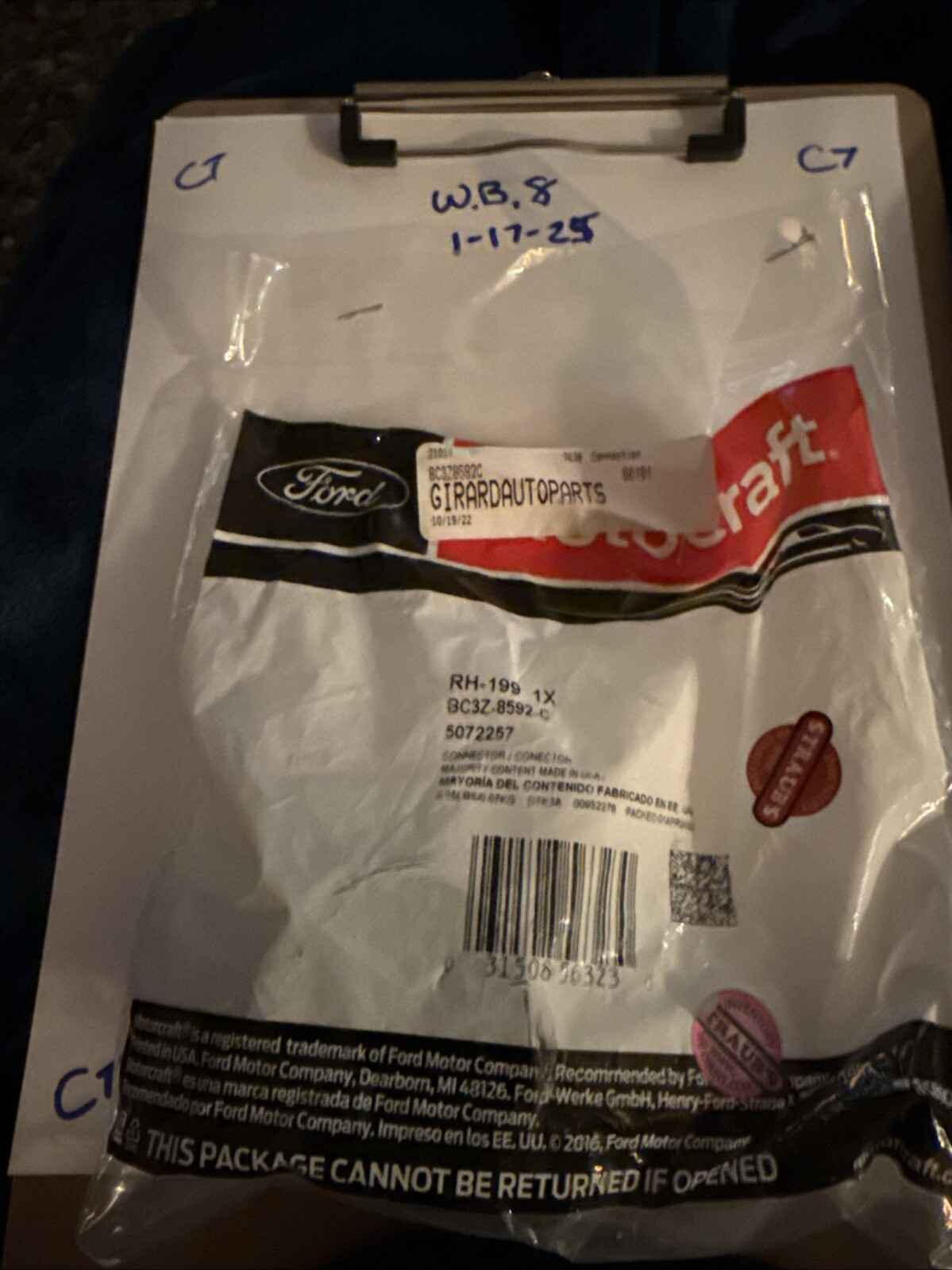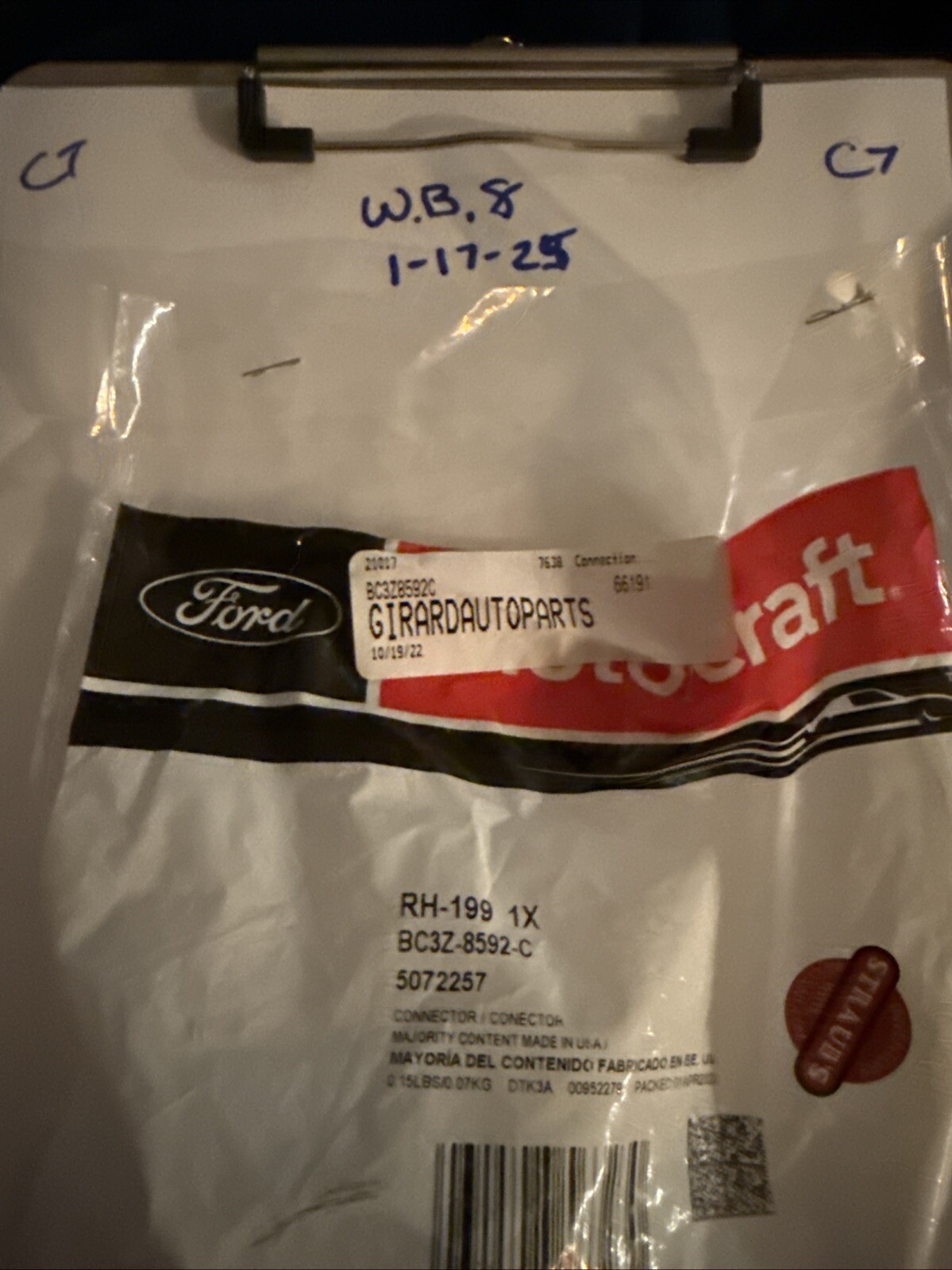 The FORD BC3Z-8592-C Connector Water Outlet RH-199 6.7 is an OEM genuine Ford part that is brand new and has never been used (NOS). It is designed for a specific vehicle model with certification as OE (Original Equipment). This water outlet connector is meant for the right-hand side of the engine and is a non-modified, non-custom part. It is a reliable component for your vehicle's cooling system, ensuring proper function and compatibility with Ford vehicles.