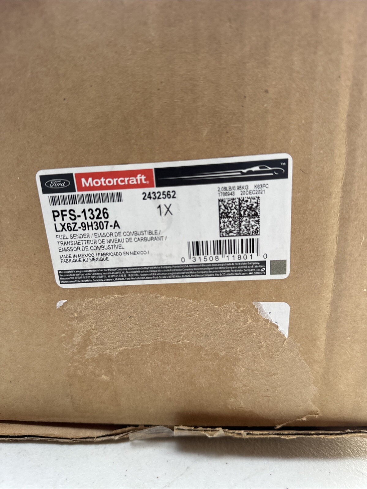 This fuel pump assembly is a genuine OEM part from Ford, designed for use in 2020-2021 Corsair models. It is a direct replacement part, with a manufacturer part number of LX6Z9H307A and an interchange part number of 702580 and WP-3119278-MTR. The pump has a maximum amperage of 9A and is categorized as a fuel system component, specifically a fuel pump.