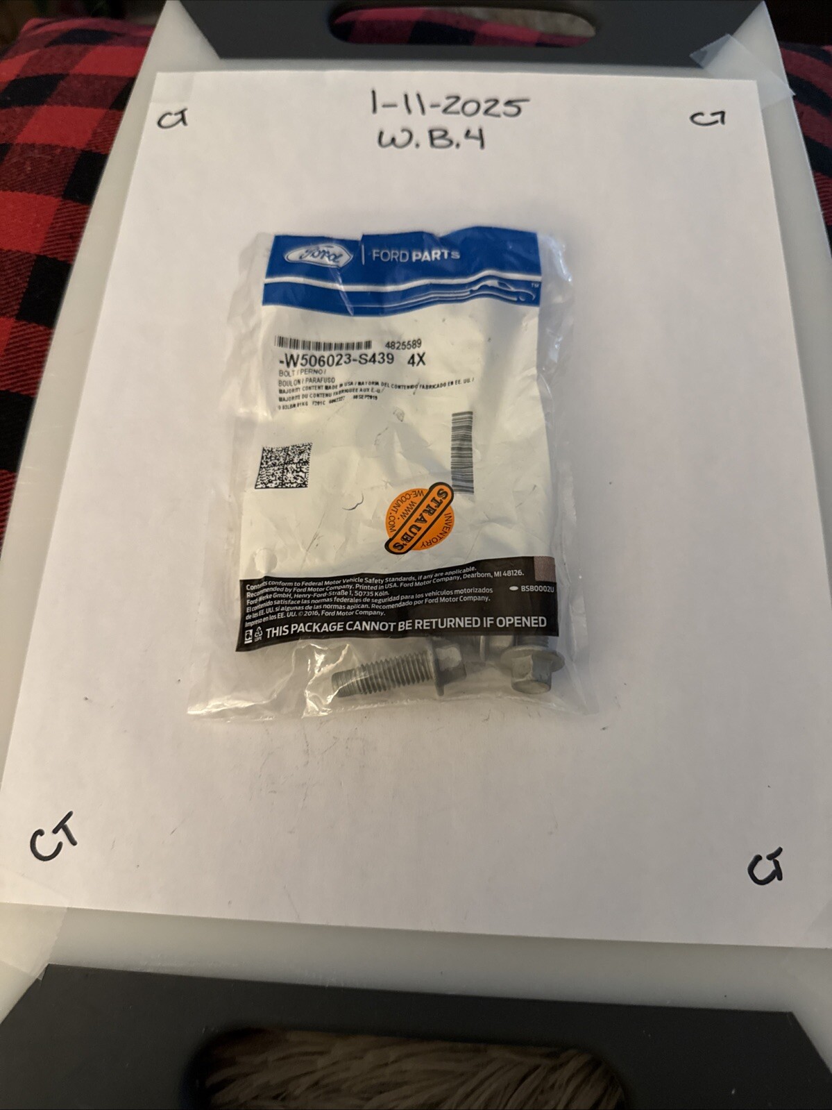 This is a pack of four Ford OEM bolts, part number W506023-S439. These bolts are perfect for use with your vehicle's wheels and tires. The pack includes only the bolts, and they are made of high-quality materials to ensure durability and longevity.