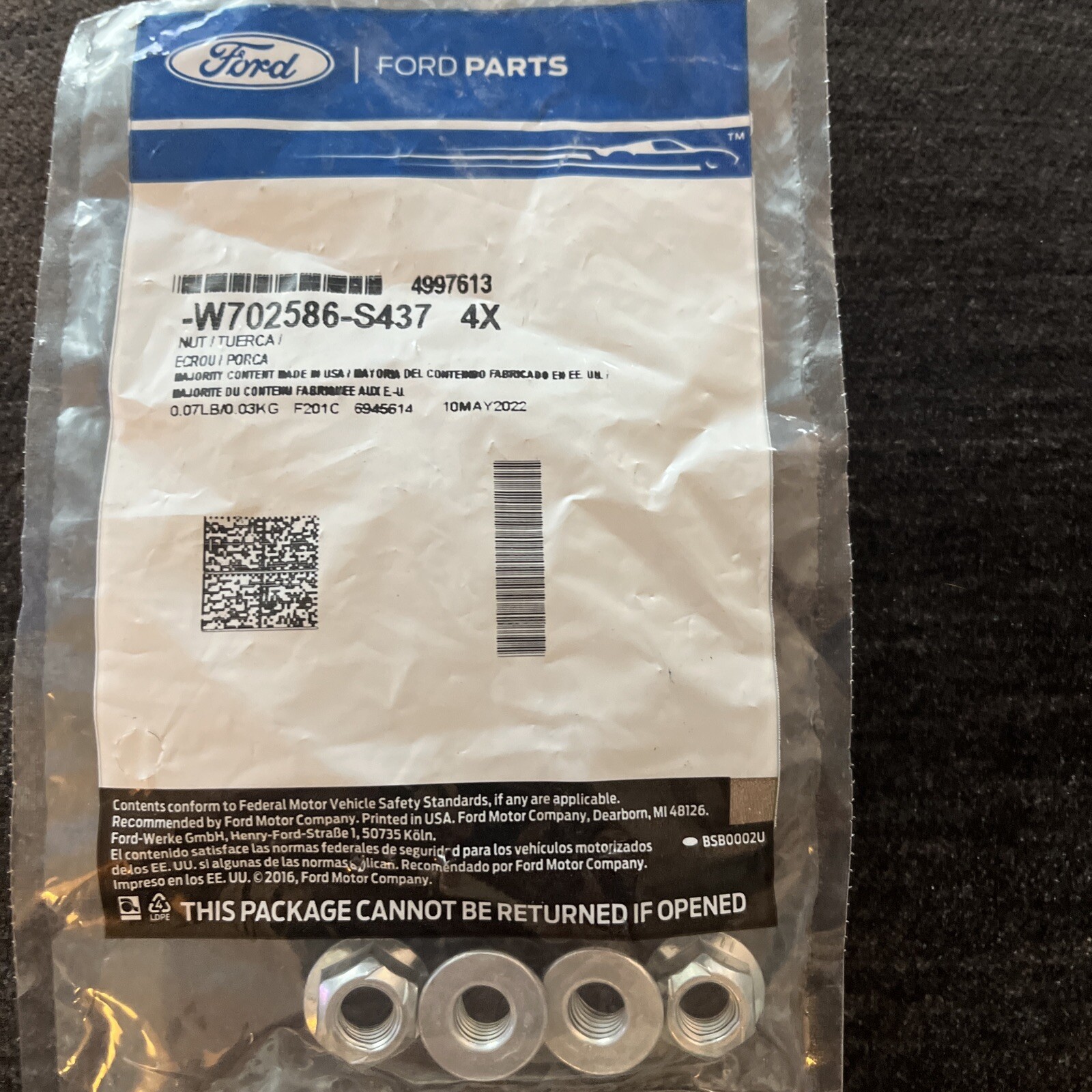 Ford OEM NOS W702586-S437 Exhaust Manifold Nut 4x 2014-2019 Fiesta 1.6L