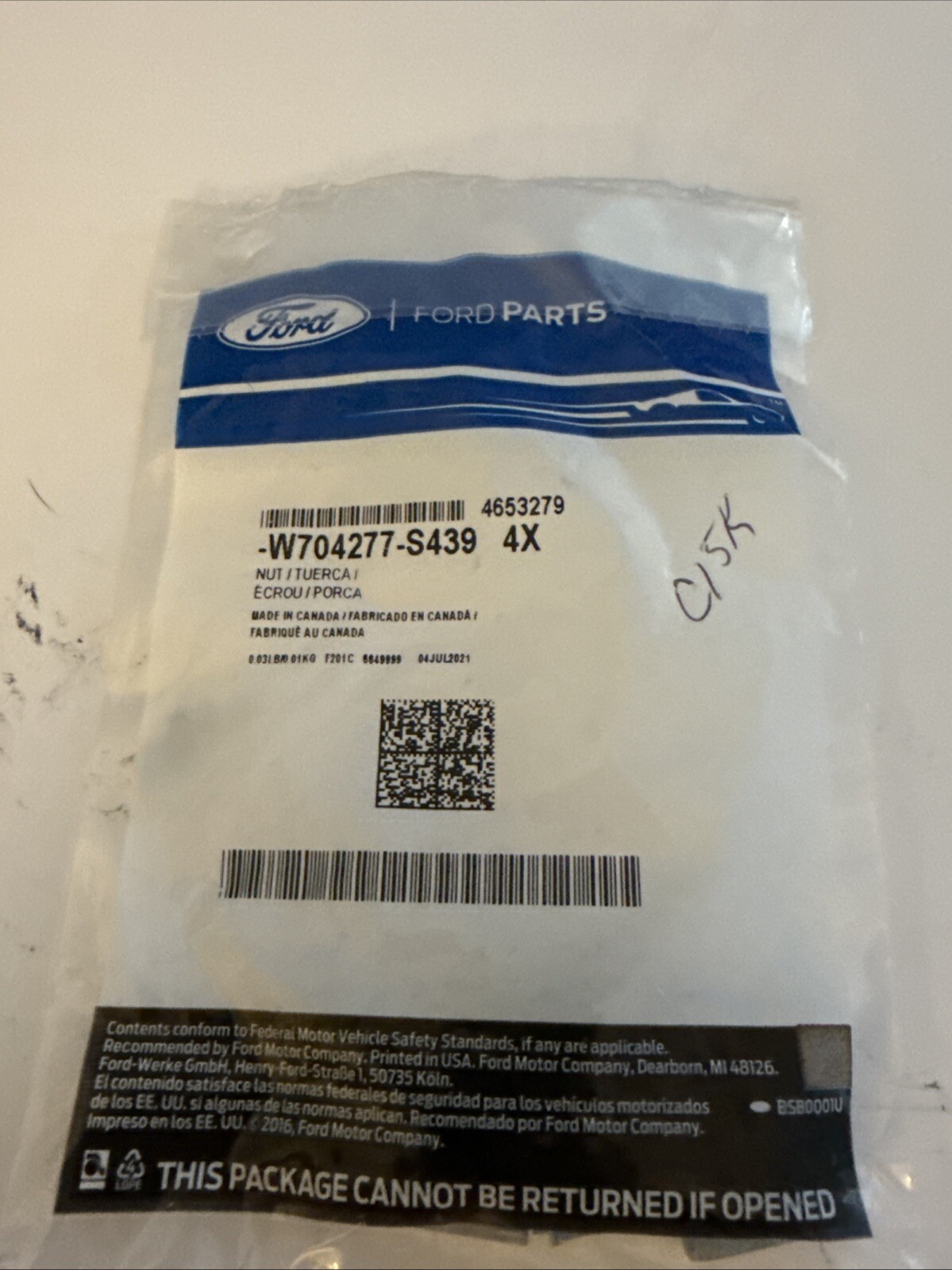 The Ford OEM NOS Rocker Molding U Nut is a set of 4 U nuts designed for the 2015-2024 Mustang 5.0L model. These nuts are in silver color and have the manufacturer part number W704277-S439. They are genuine OEM parts, suitable for both upper and lower positioning on the front, left, right, and inner areas of the vehicle's body moldings. These U nuts are specifically engineered for a precise fit and are not considered a performance part, making them ideal for maintaining the original design of the Mustang.