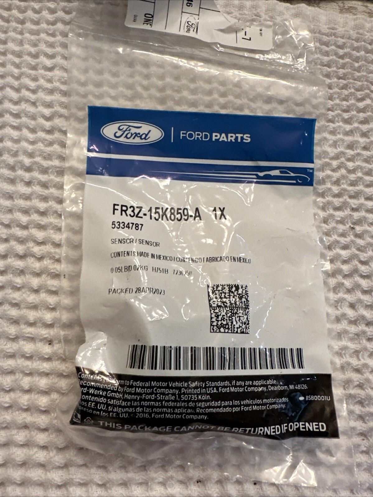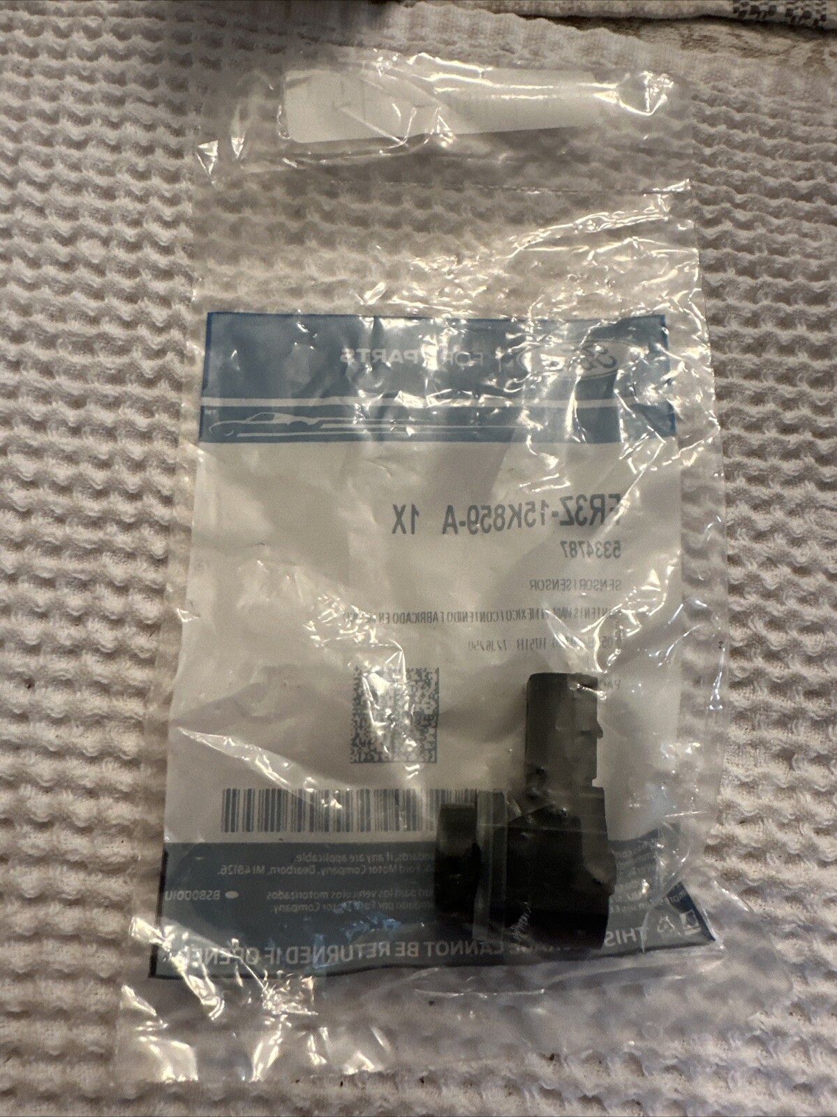 This FORD OEM Rear Bumper-Park Sensor is a direct replacement for your vehicle's damaged bumper. The manufacturer part number is FR3Z15K859A and the item name is Park Sensor. It is a genuine OEM part and comes with a quantity of 1.