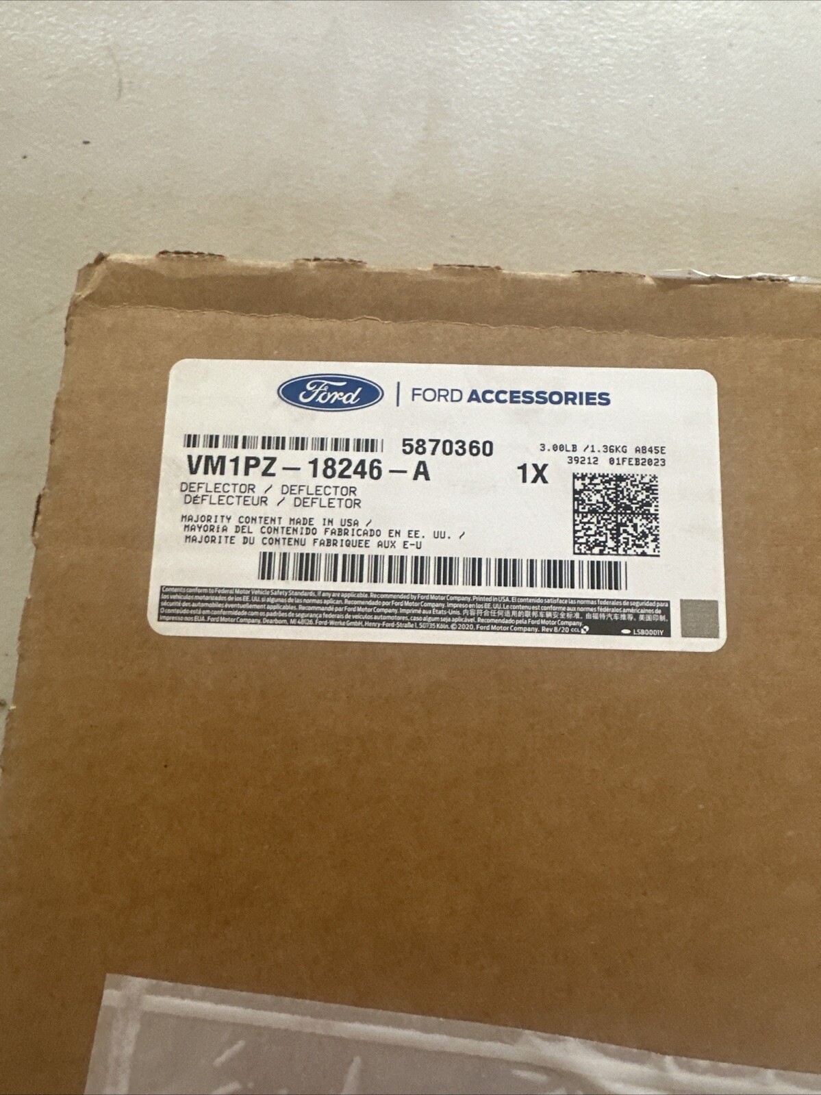 This Ford OEM deflector, with manufacturer part number VM1PZ-18246-A, is a direct replacement for your vehicle. It is a genuine OEM part and comes in a quantity of 1. The SKU for this item is 100:VM1PZ-18246-A.
