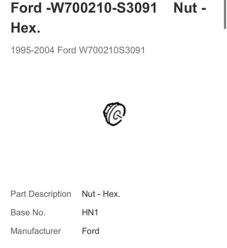 Ford -W700210-S3091 Nut – Hex. 1995-2004 Ford W700210S3091