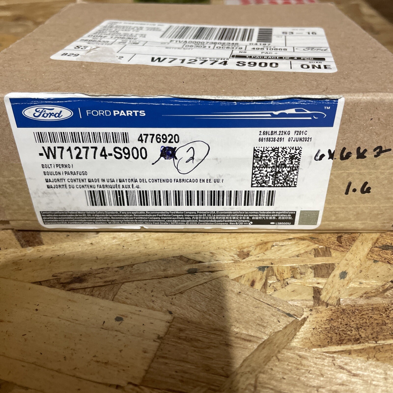 This is a brand new Ford rear suspension lower control arm bolt, with the manufacturer part number W712774-S900. It is designed for securing the lower control arm in place on the vehicle. This bolt, with the interchange part number W712774S900, is an essential component for maintaining the proper alignment and stability of the rear suspension system. It is a genuine Ford part, ensuring compatibility and quality for your vehicle's steering and suspension system.