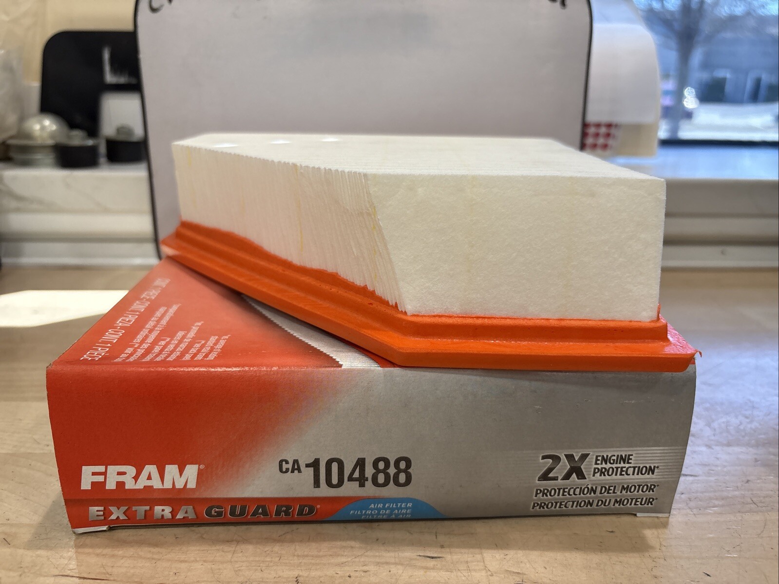 Keep your vehicle running smoothly with the FRAM Extra Guard Air Filter CA10488. Designed to provide superior filtration, this air filter is ideal for ensuring that your car's engine intake system is protected from dust and debris. The filter is made by Fram, a reputable brand known for producing high-quality automotive parts.