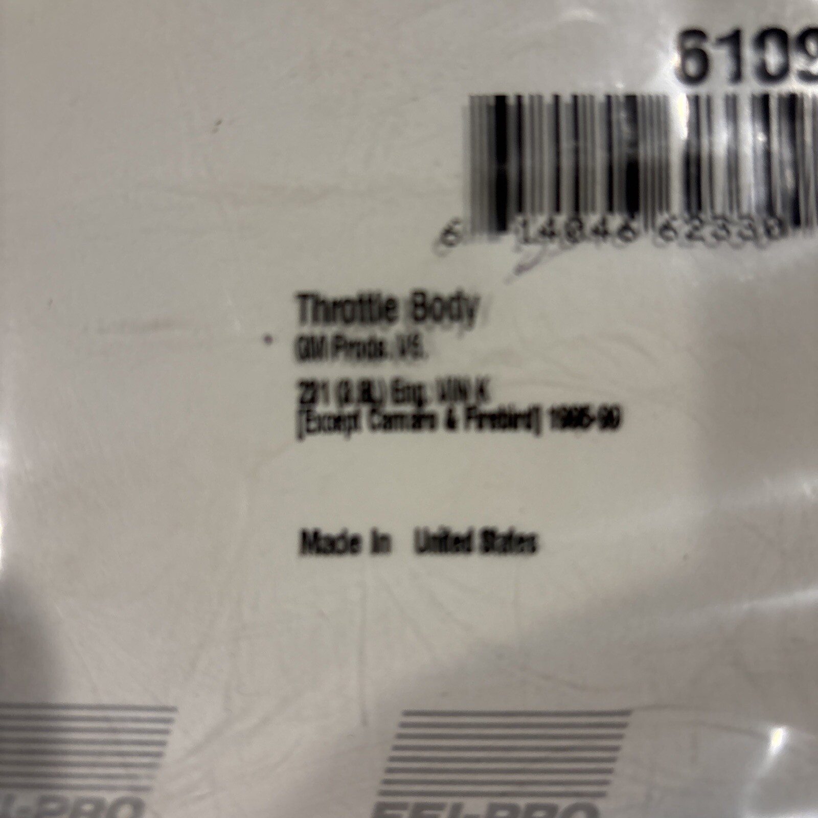 Fuel Injection Throttle Body Mounting Gasket Fel-Pro 61093 NOS