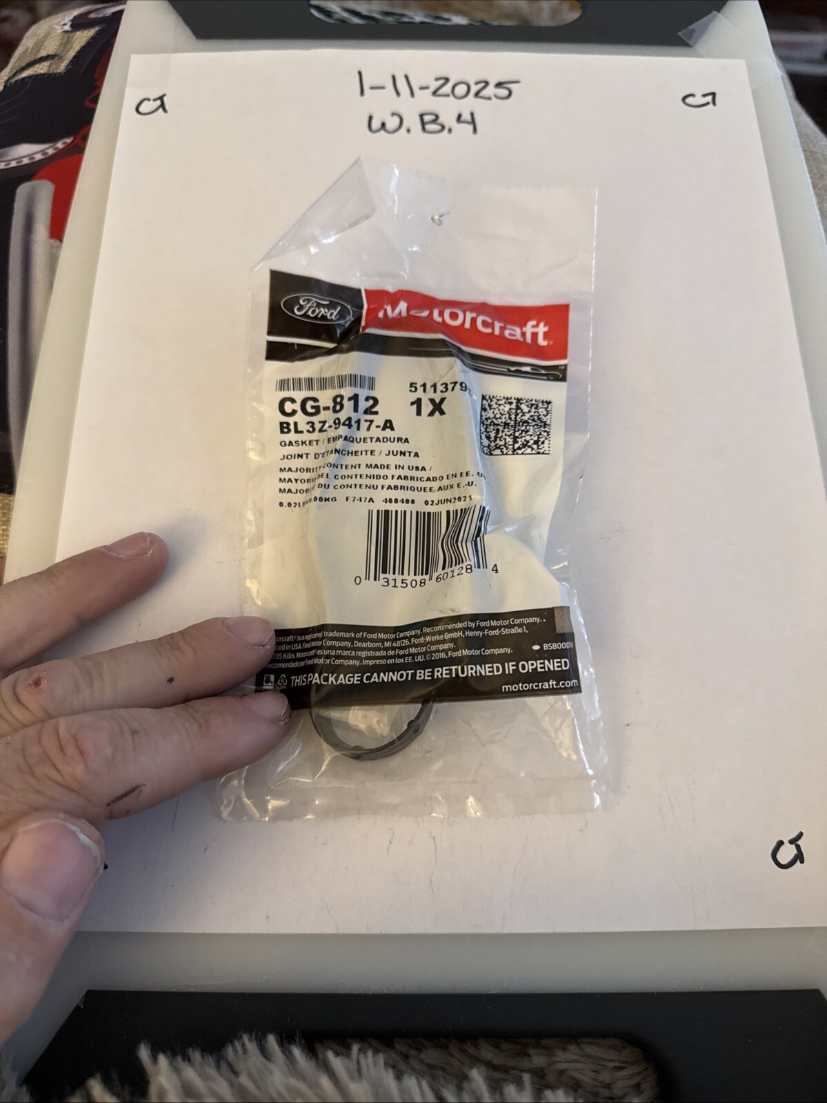 The product is a Fuel Pump Gasket manufactured by Motorcraft, with the part number CG-812. It is designed as a replacement part for fuel pump systems in cars and trucks. The quantity provided is 1, and it is identified by the SKU MTC:CG-812. This Motorcraft gasket ensures a proper seal for the fuel pump, preventing leaks and maintaining the efficiency of the fuel delivery system. It is a genuine Motorcraft part, known for its quality and compatibility with various vehicles.