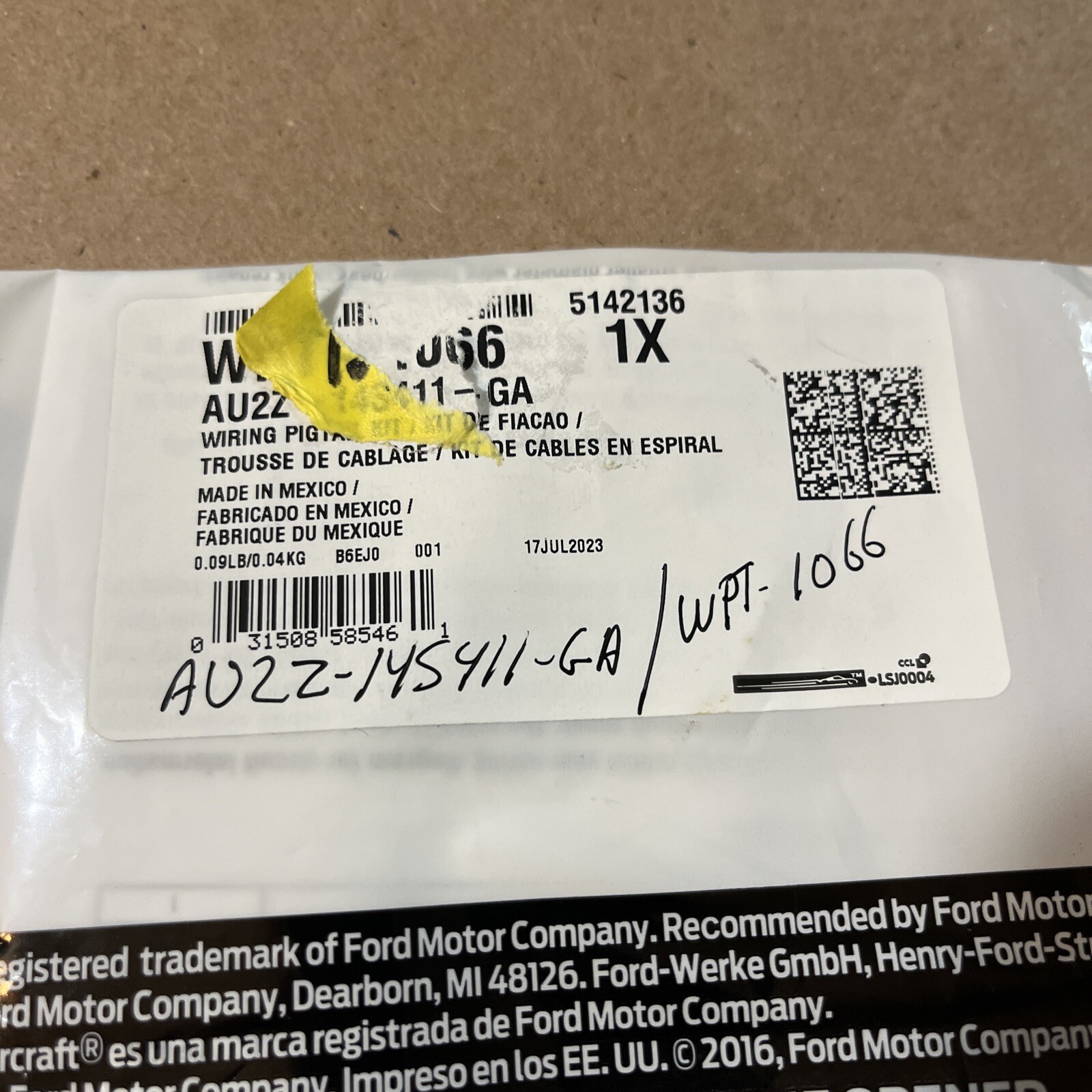 Fuel Rail Pressure Sensor Connector Motorcraft WPT-1066 / AU2Z-145411-GA