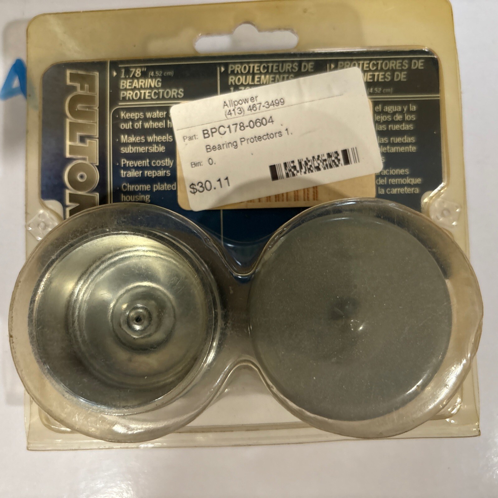 The product is a set of Fulton Bearing Protectors with covers, specifically the BPC178-0604 model. These bearing protectors are designed for use on trailers and are essential for keeping the wheel bearings properly lubricated and protected from water and debris. The Fulton brand is known for producing high-quality trailer parts, ensuring durability and reliability for safe towing.