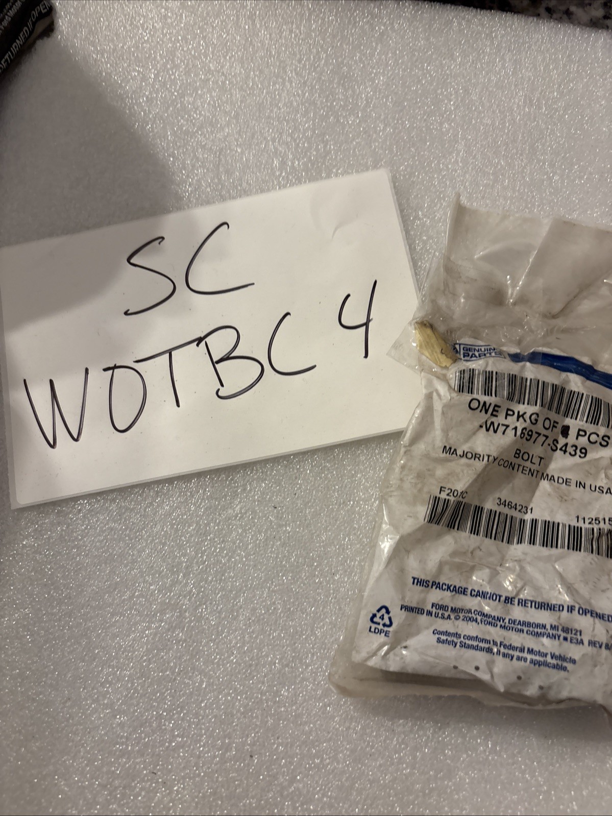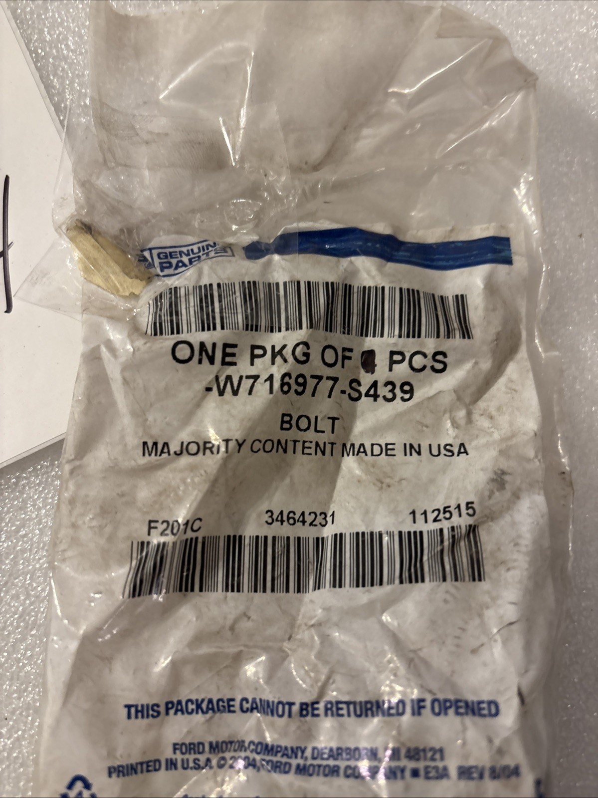 GENUINE FORD 2015/2019 BOLT" M10X1.5, SEAT BELT LAP SHOULDER BELT, W716977-S439
