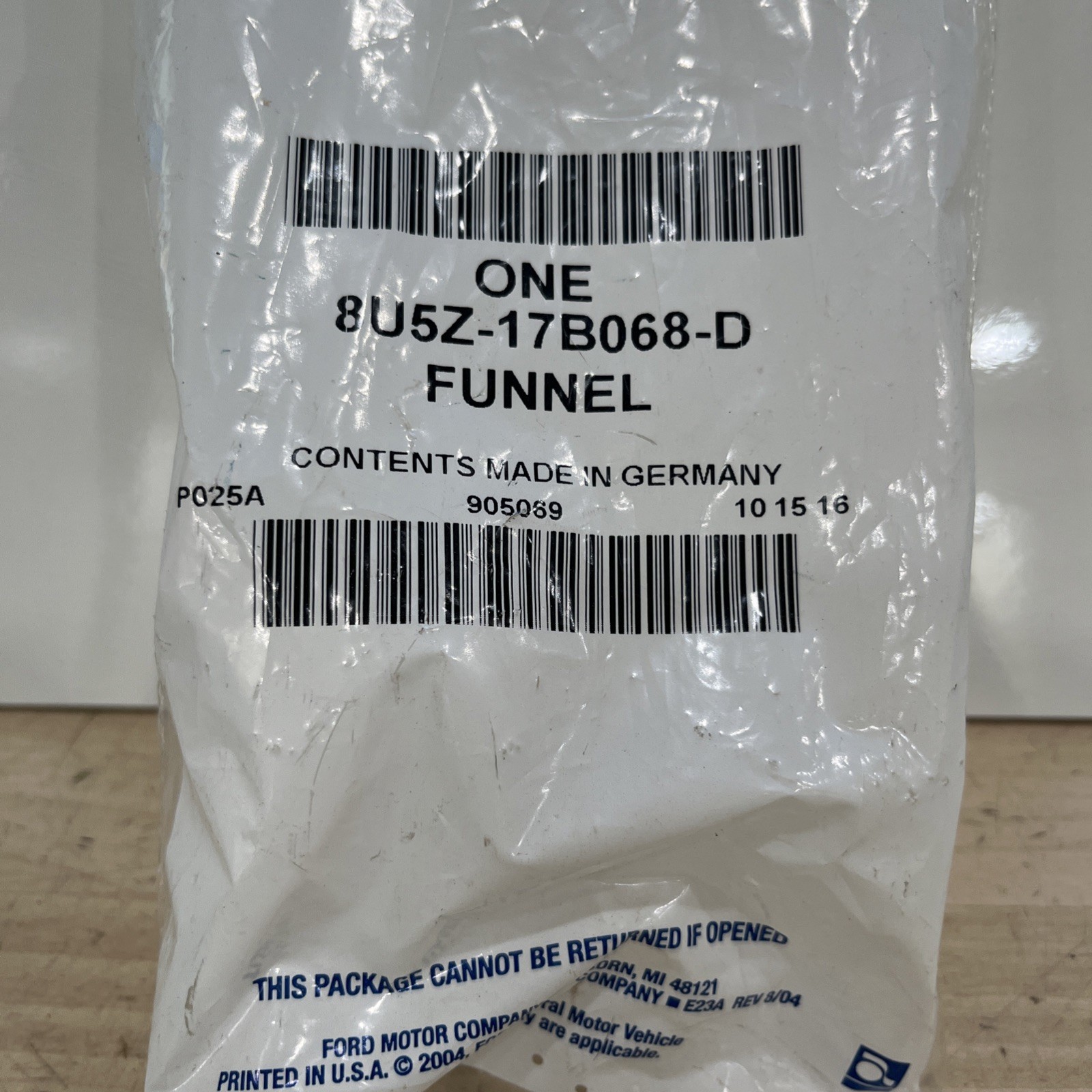 This genuine Ford funnel is designed to fit perfectly into your car's fuel tank and ensure a smooth and efficient refueling process. Made from durable plastic, it is built to last and withstand the rigors of daily use. With its unique funnel type and part number 8U5Z-17B068-D, you can be sure that it is the perfect accessory for your Ford vehicle.
