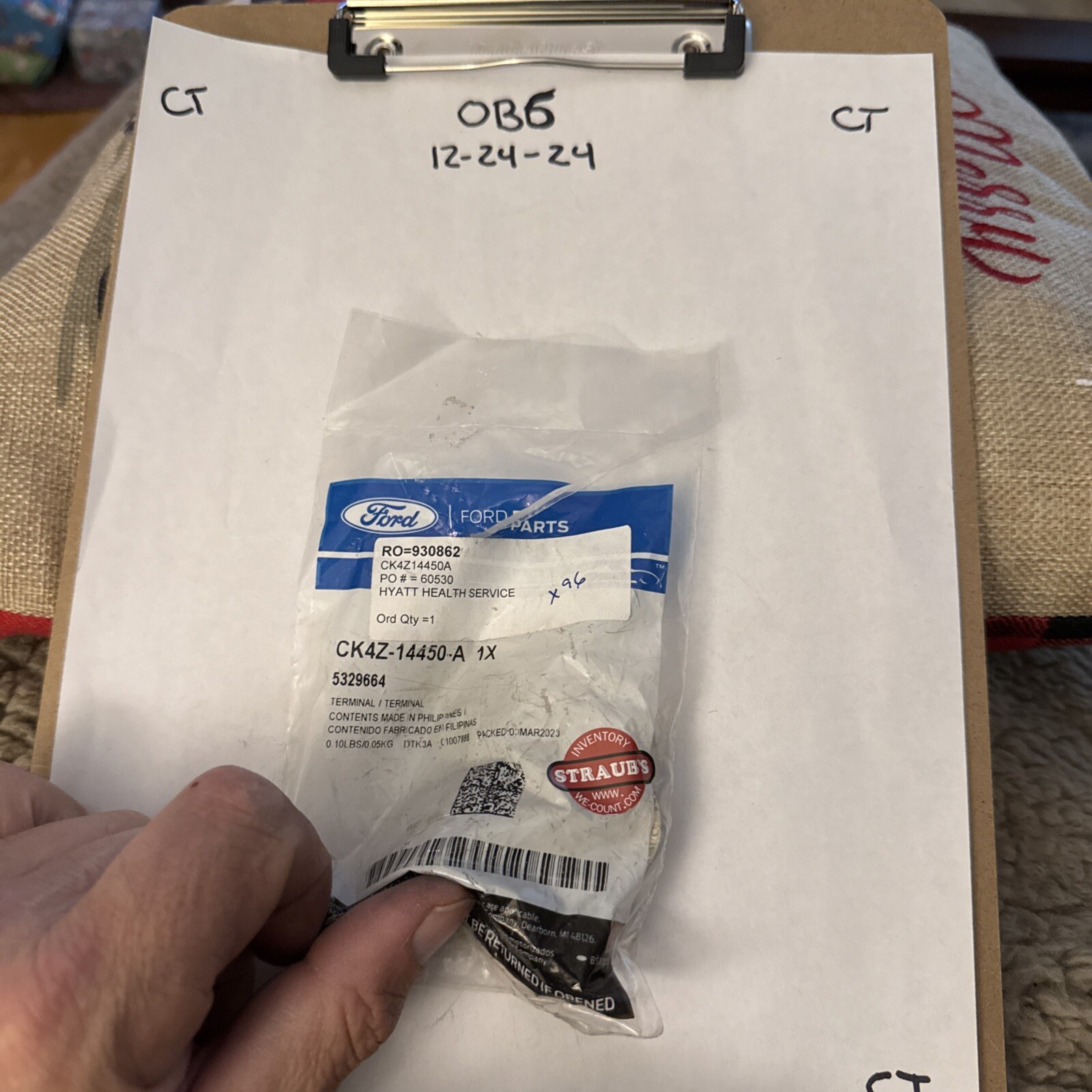 The product is a Genuine Ford Battery Cable Terminal End with the manufacturer part number CK4Z-14450-A. It is designed as a direct replacement part for specific models including Transit-150, Transit-250, Transit-350, and Transit-350 HD from the years 2015 to 2023. This OEM part is only inclusive of part reference #12 on the diagram, ensuring compatibility and reliability for Ford vehicles.