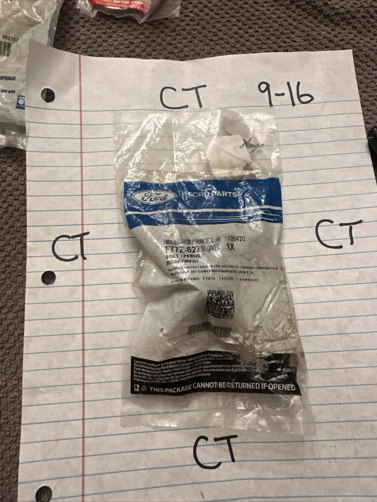This is a genuine Ford bolt with the product name F77Z-6279-AD. It is a direct replacement with a manufacturer part number of F77Z-6279-AD and SKU of F77Z-6279-AD. This bolt is an OEM part and is perfect for any Ford vehicle. The brand of the bolt is Ford and it is made of high-quality materials. It is compatible with various Ford models and is designed to fit perfectly. This product is perfect for those looking for a replacement bolt for their Ford vehicle.