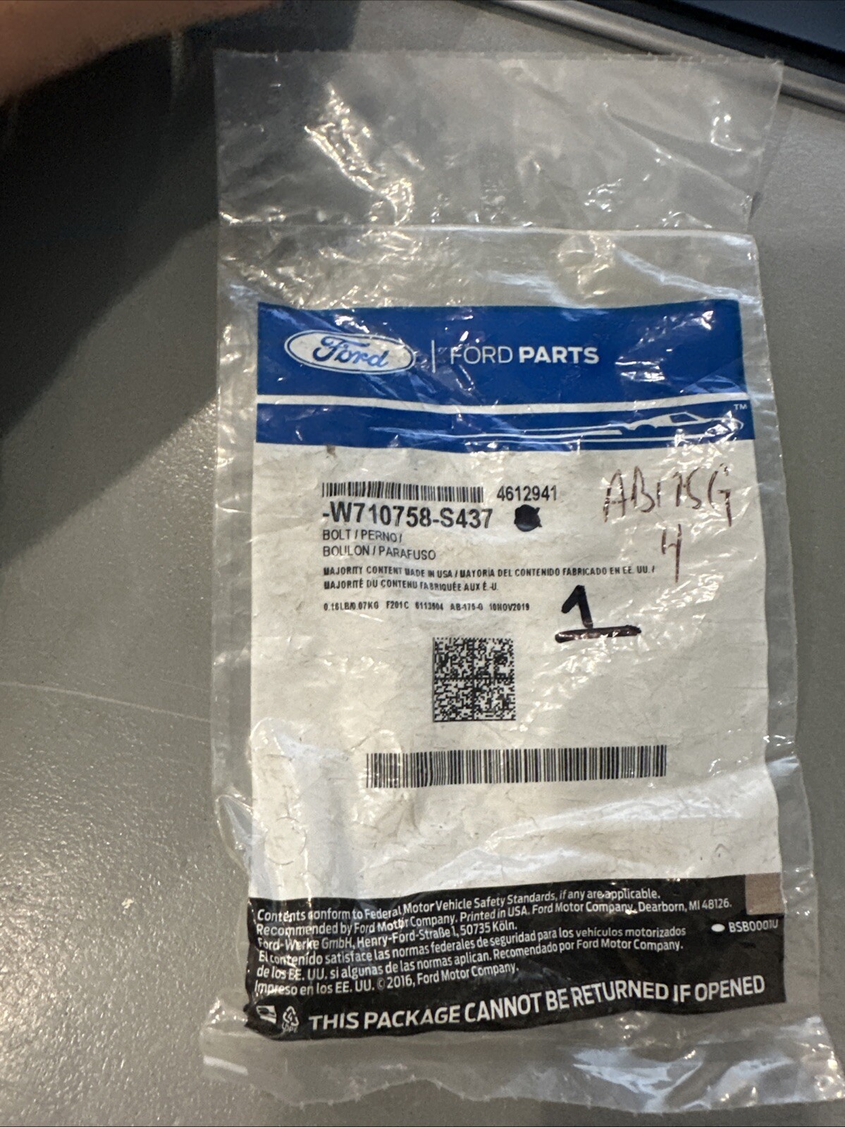 Genuine Ford Bolt -W710758-S437