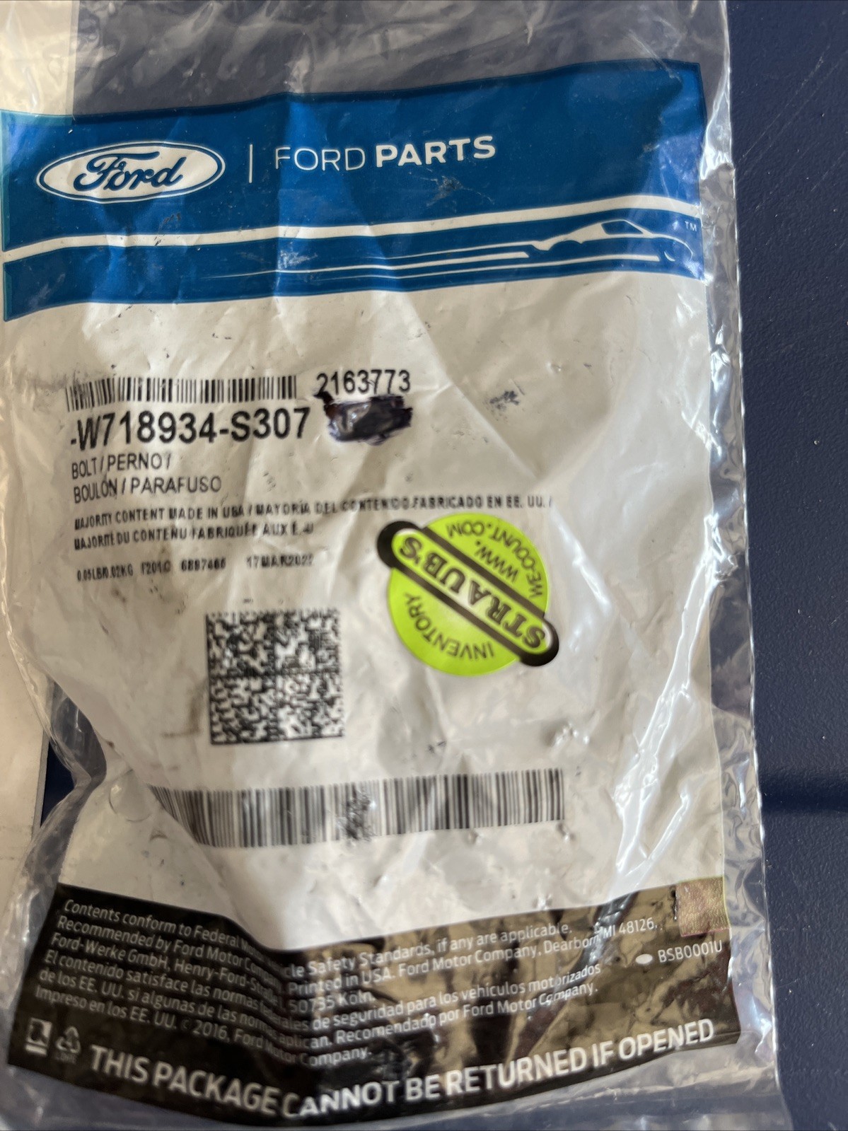 Genuine Ford Bolt, W718934-S307