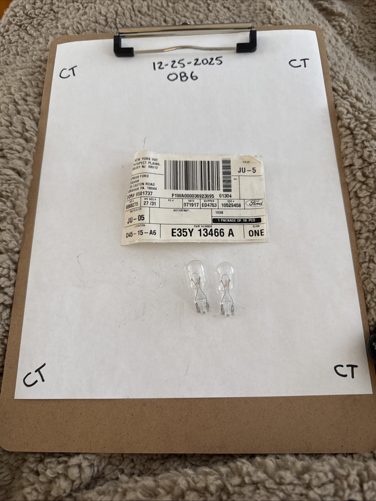 This is a Genuine Ford Bulb with part number E35Y-13466-A, designed as a direct replacement for various Ford and Mercury models including F-250 Super Duty, F-350 Super Duty, Ranger, Capri, and Mustang. It is a single bulb sold individually, identified by SKU E35Y-13466-A. This OEM product is manufactured by Ford and is specifically labeled for compatibility with the mentioned vehicle models. Please note that only part reference #2 on the diagram is included with this purchase.