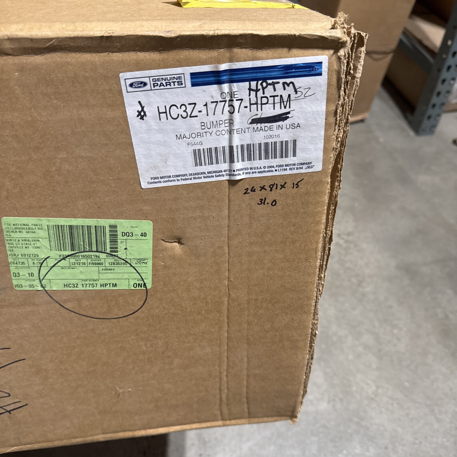 The product is a Genuine Ford Bumper with part reference number HC3Z-17757-HPTM, designed for direct replacement on Ford F-350 Super Duty and F-250 Super Duty models from the years 2017 to 2019. This OEM bumper is specifically manufactured by Ford and includes only the part referenced on the diagram, ensuring a precise fit and high quality. The bumper is a genuine Ford product, marked with the manufacturer part number HC3Z-17757-HPTM and SKU HC3Z-17757-HPTM.