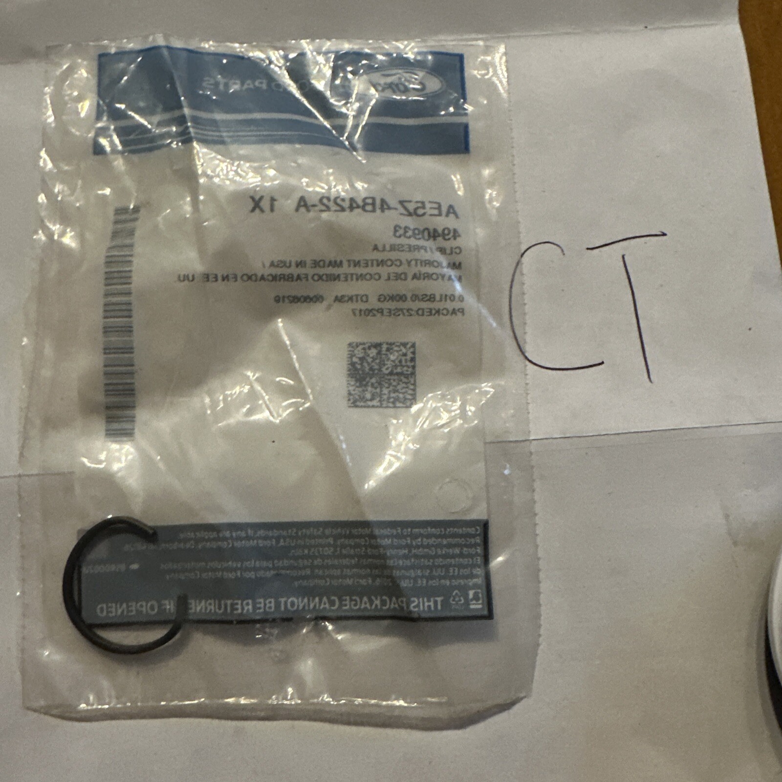 This is a genuine Ford clip with the part number AE5Z-4B422-A, suitable for use on 2017-2019 Ford Escape vehicles. The brand of the part is Ford and it is a clip designed for use in car and truck parts and accessories.