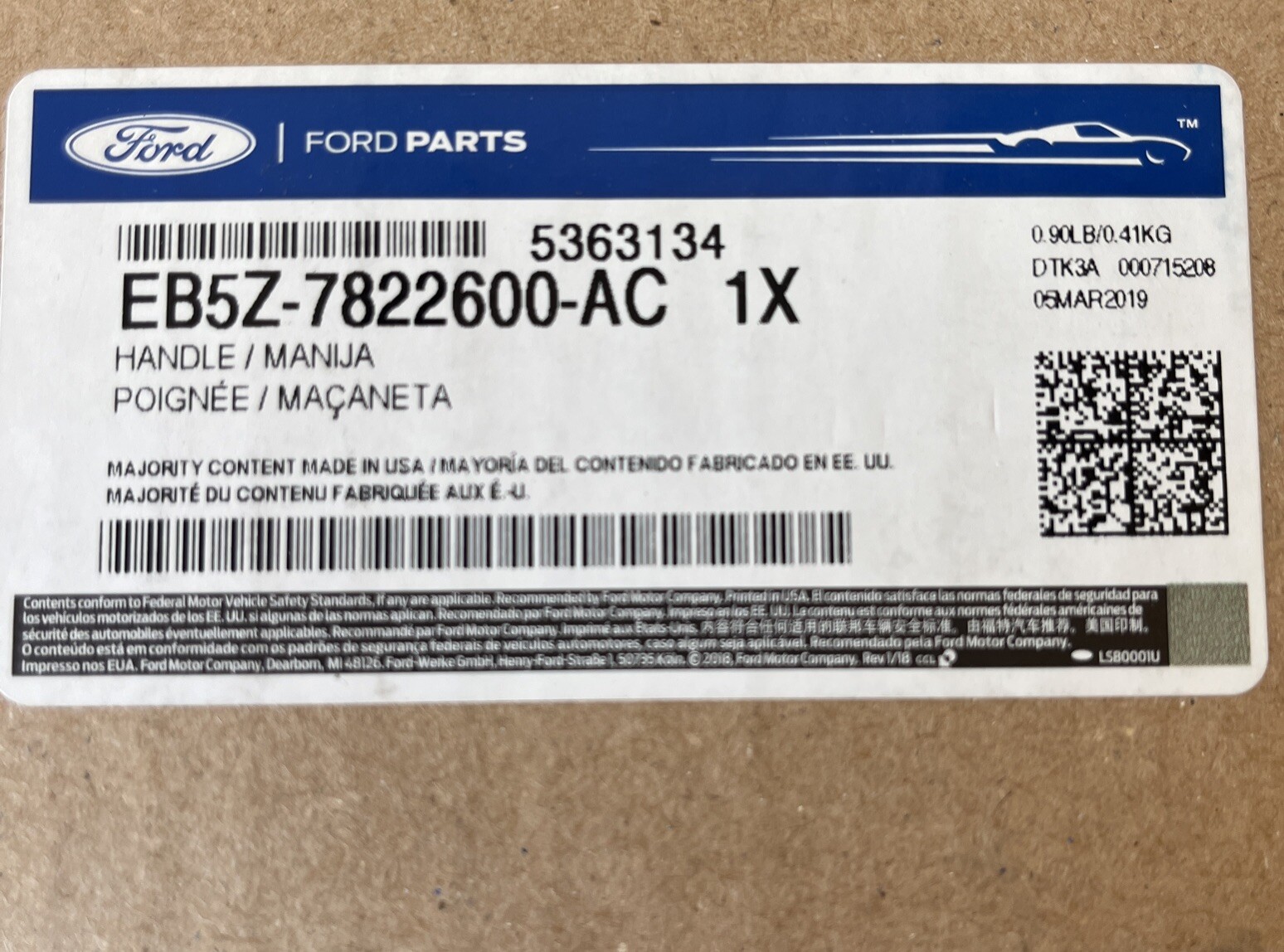 | Manufacturer Part Number | EB5Z-7822600-AC |
