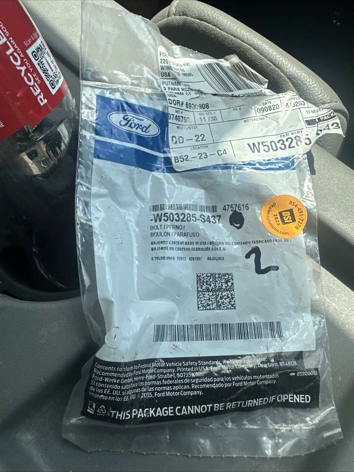 The product name is W503285-S437 and it is a genuine OEM part. It is compatible with a range of models and is included in the category of Gaskets, Seals & Hardware, Brackets & Hardware. The SKU is -W503285-S437. Order this genuine Ford engine cylinder head bolt today and experience high-quality performance!