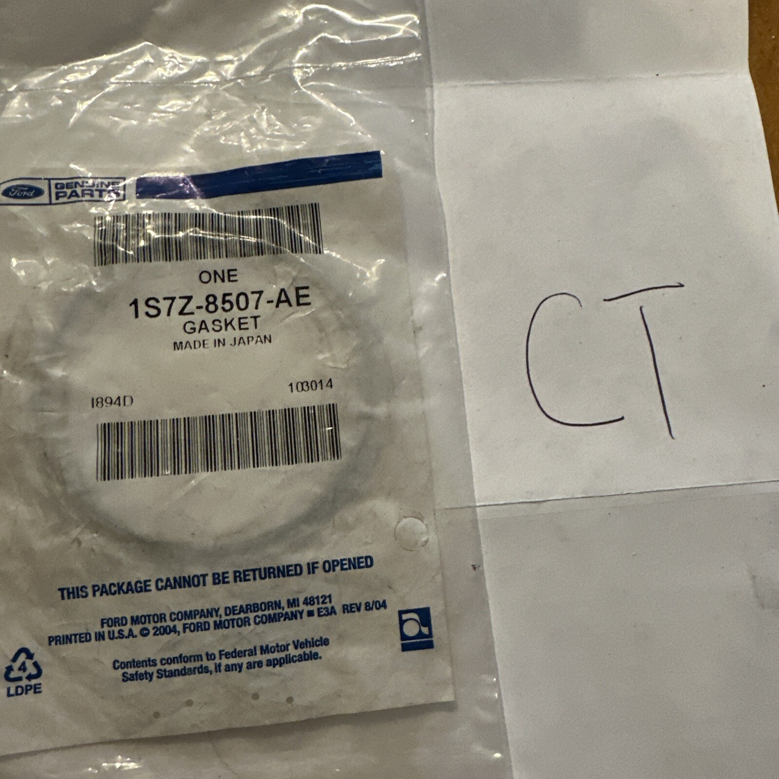 This is a Genuine Ford Engine Water Pump Outlet Pipe Gasket, with part number 1S7Z-8507-AE. It is a direct replacement for your vehicle's engine cooling components, specifically for the water pump outlet pipe. This gasket is made by the manufacturer with high-quality materials, ensuring a perfect fit and lasting durability.