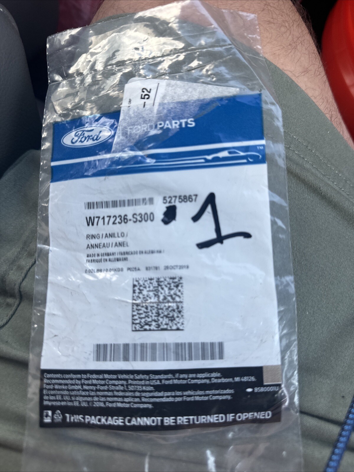 Genuine Ford Escape Fusion Fiesta O-ring gasket seal W717236-S300 1-Ring