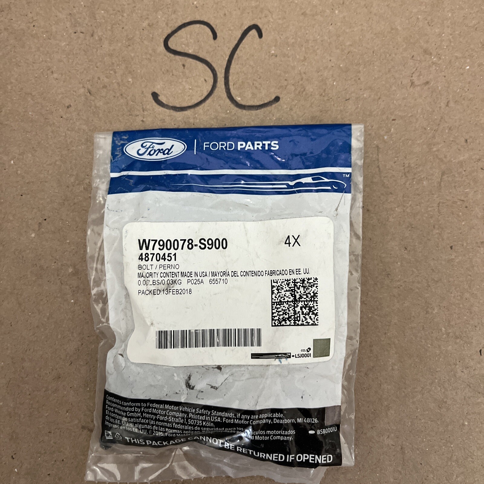 Genuine Ford Front Bracket Bolt W790078-S900 – 4 Pack