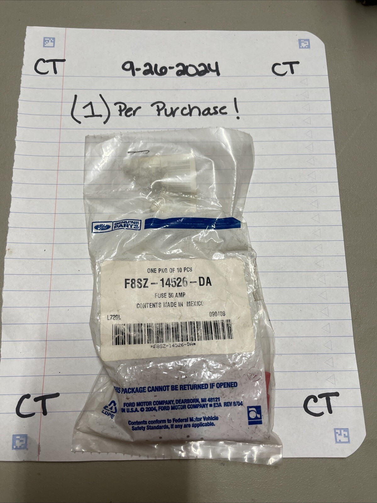 This Genuine Ford Fuse OEM 50amp F8SZ14526DA is a high-quality replacement part for your vehicle's fuse box. It is a direct replacement for the F8SZ-14526-DA part number and is made by the manufacturer with the same part number. This fuse is made by Ford and is an OE/OEM part number F8SZ14526DA.