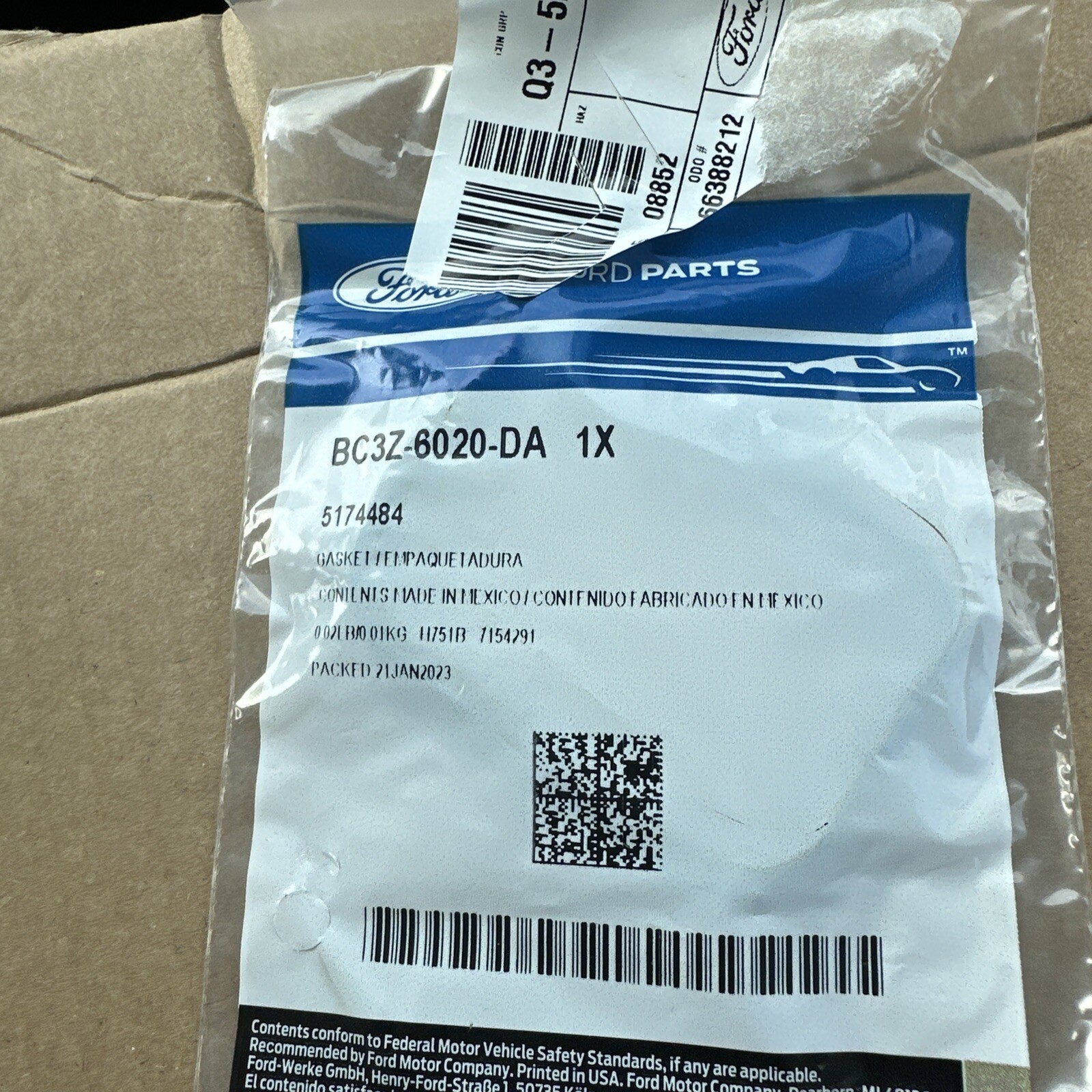 [Gasket] 6.7 LITER, lower front; PARTS: Part included with front cover.; |