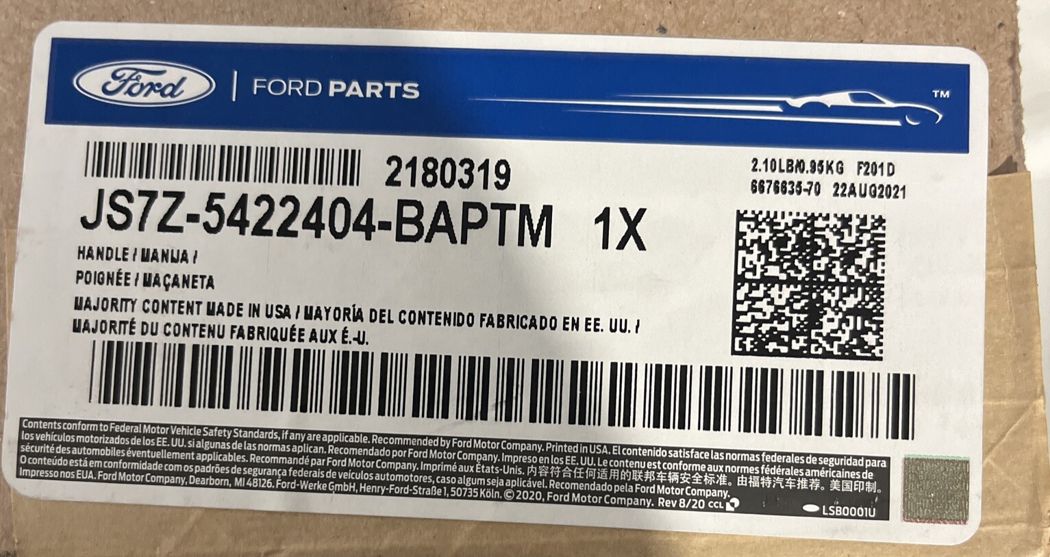 Genuine Ford Handle, Outside JS7Z-5422404-BAPTM