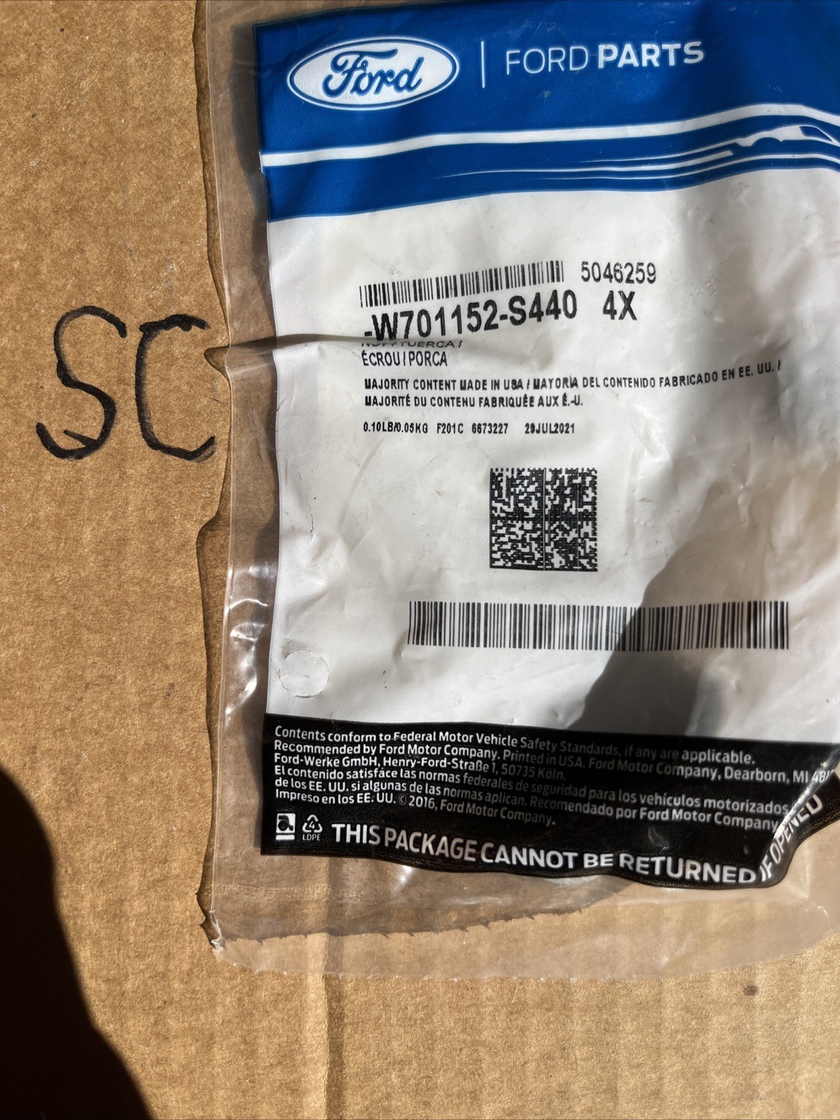 | Product Name | Genuine Ford Hold Down Clamp Nut W701152-S440 |