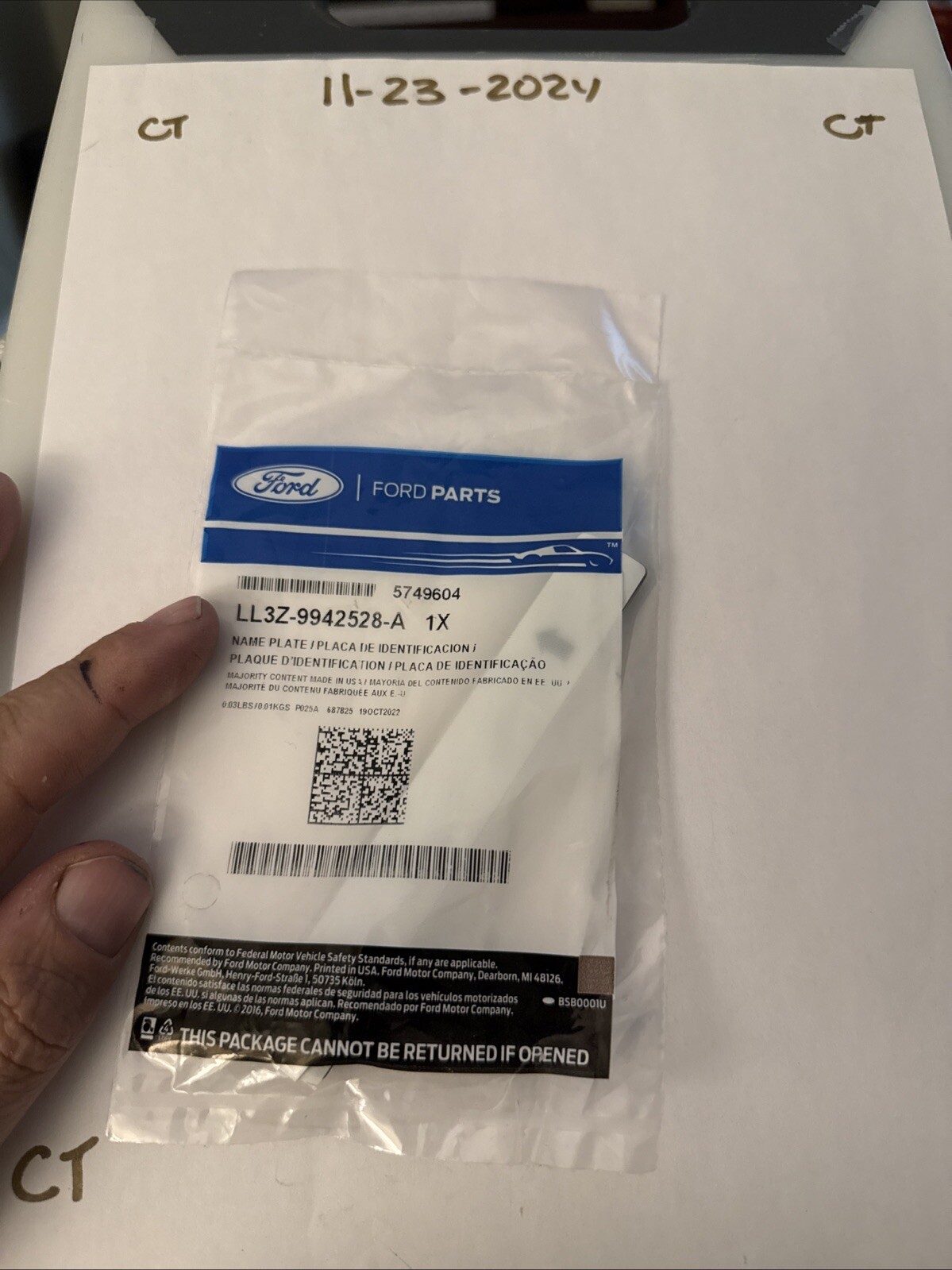 This genuine Ford name plate is a direct replacement for the original one, ensuring a perfect fit and finish for your vehicle. It is made with high-quality materials to withstand the rigors of daily use, and it is designed to provide a sleek and stylish look for your car. The manufacturer part number is LL3Z-9942528-A, and it is a genuine OEM product, so you can be assured of its quality and durability. This name plate is a great addition to your collection, and it is sure to enhance the overall appearance of your vehicle.