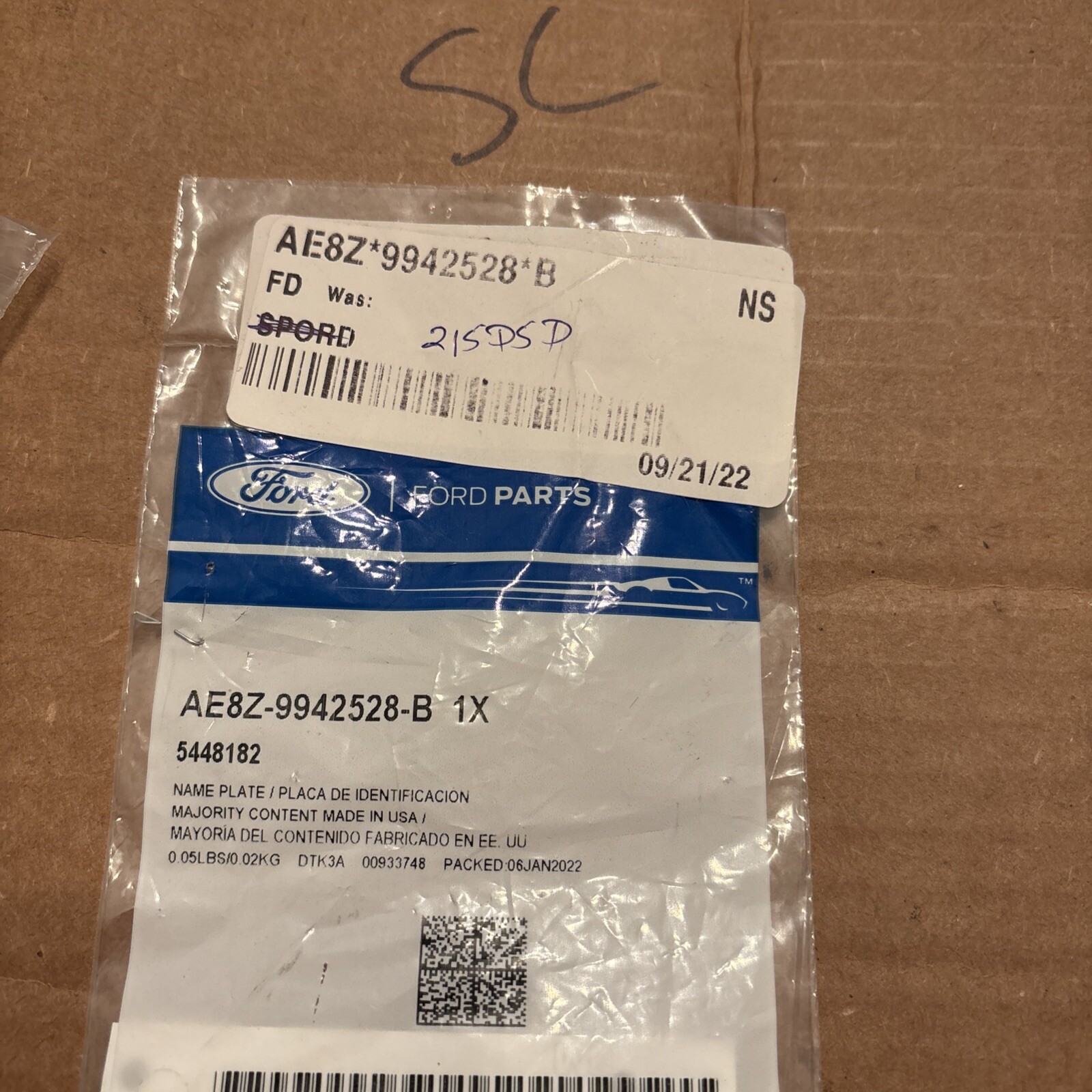 Ford AE8Z-9942528-B Name Plate
