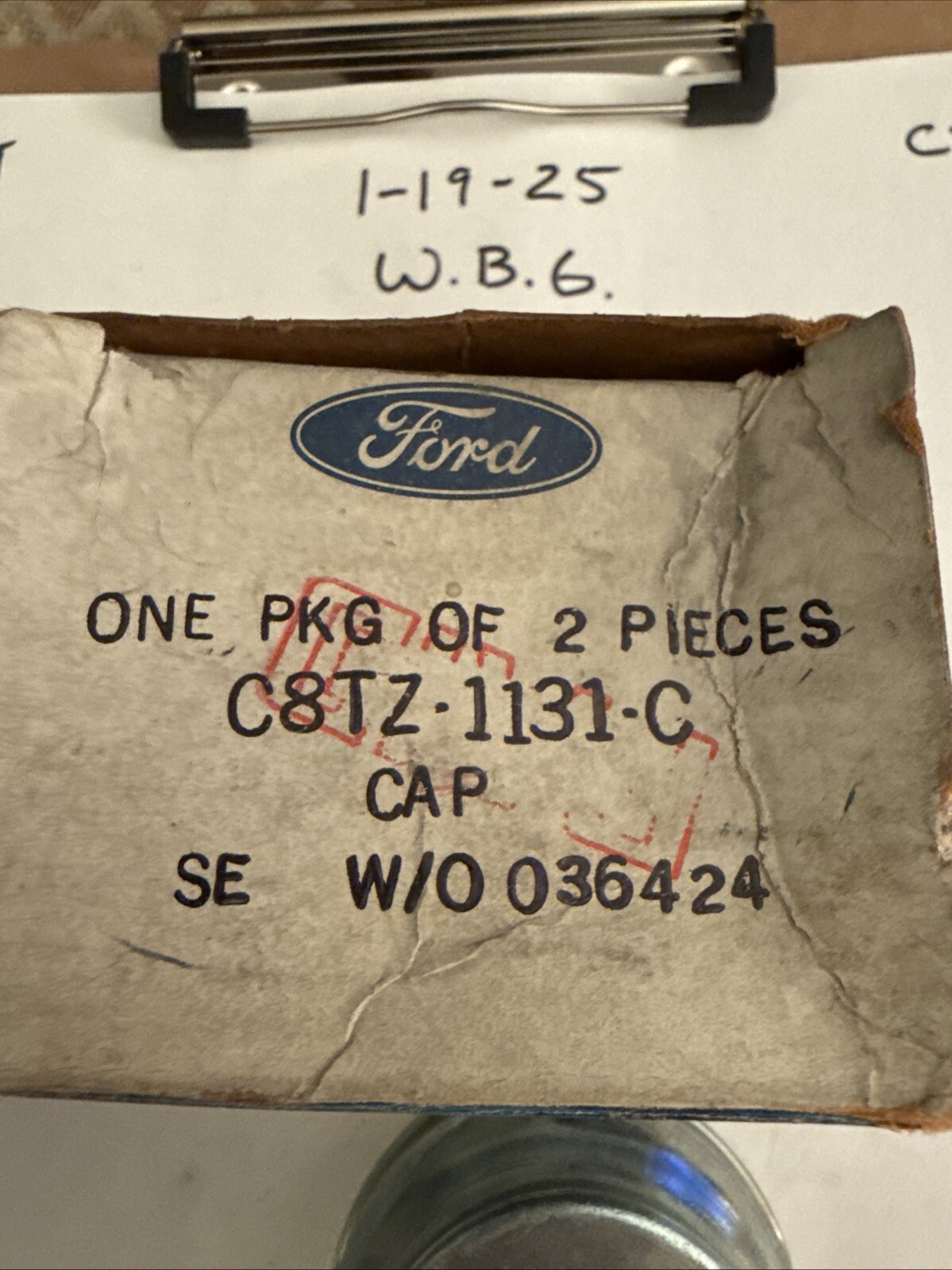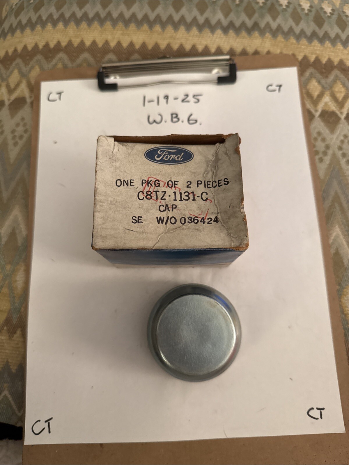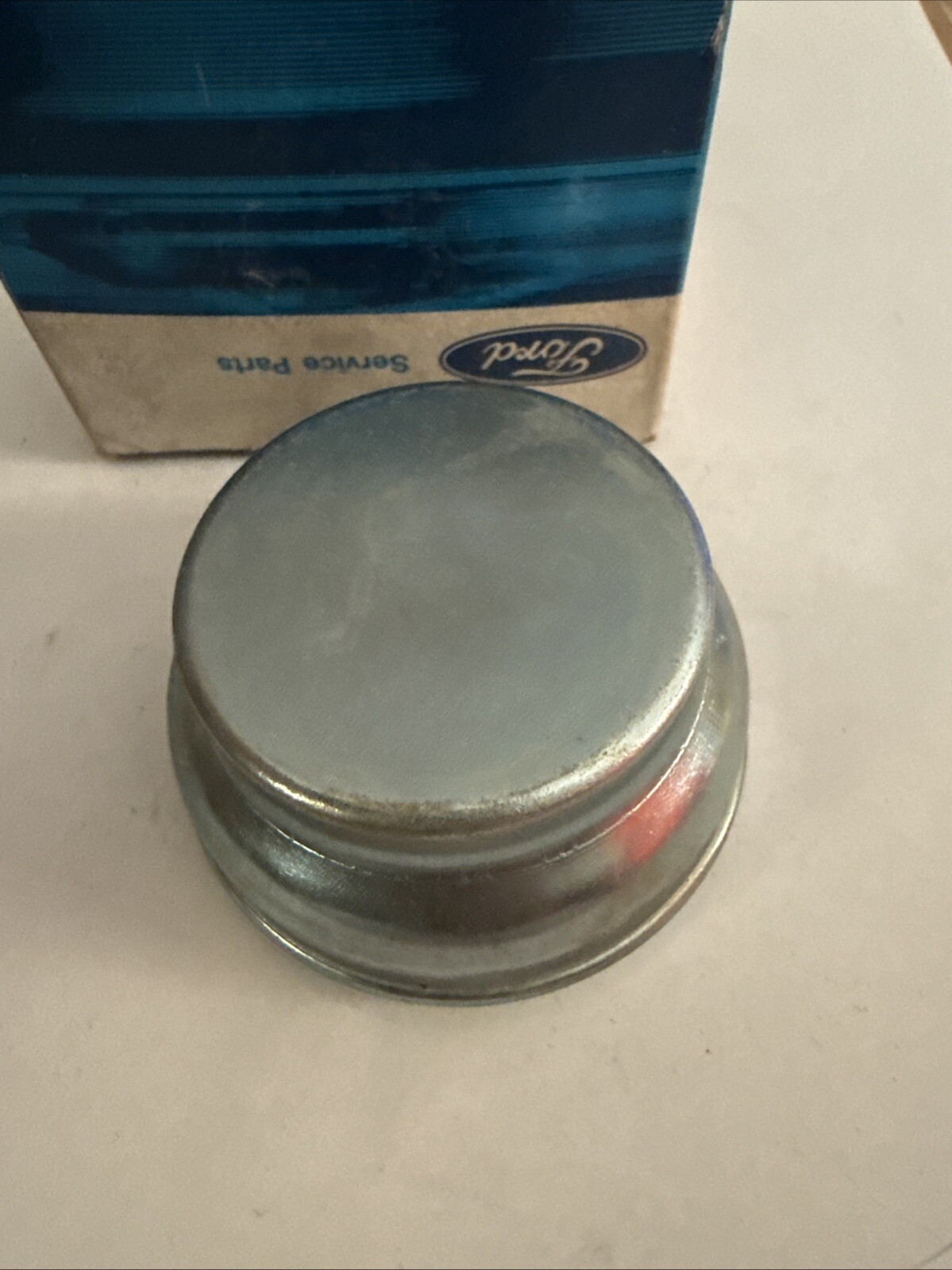 The product is a Genuine Ford Grease Cap C8TZ-1131-C, a vintage part made in the United States for Ford trucks. It is a genuine OEM part that serves as a direct replacement for the front wheel bearings, hubs, and seals. The package includes only part reference #7 on the diagram, along with grease for installation. This NOS (New Old Stock) item is a rare find for collectors or those in need of authentic Ford parts for their vintage trucks.